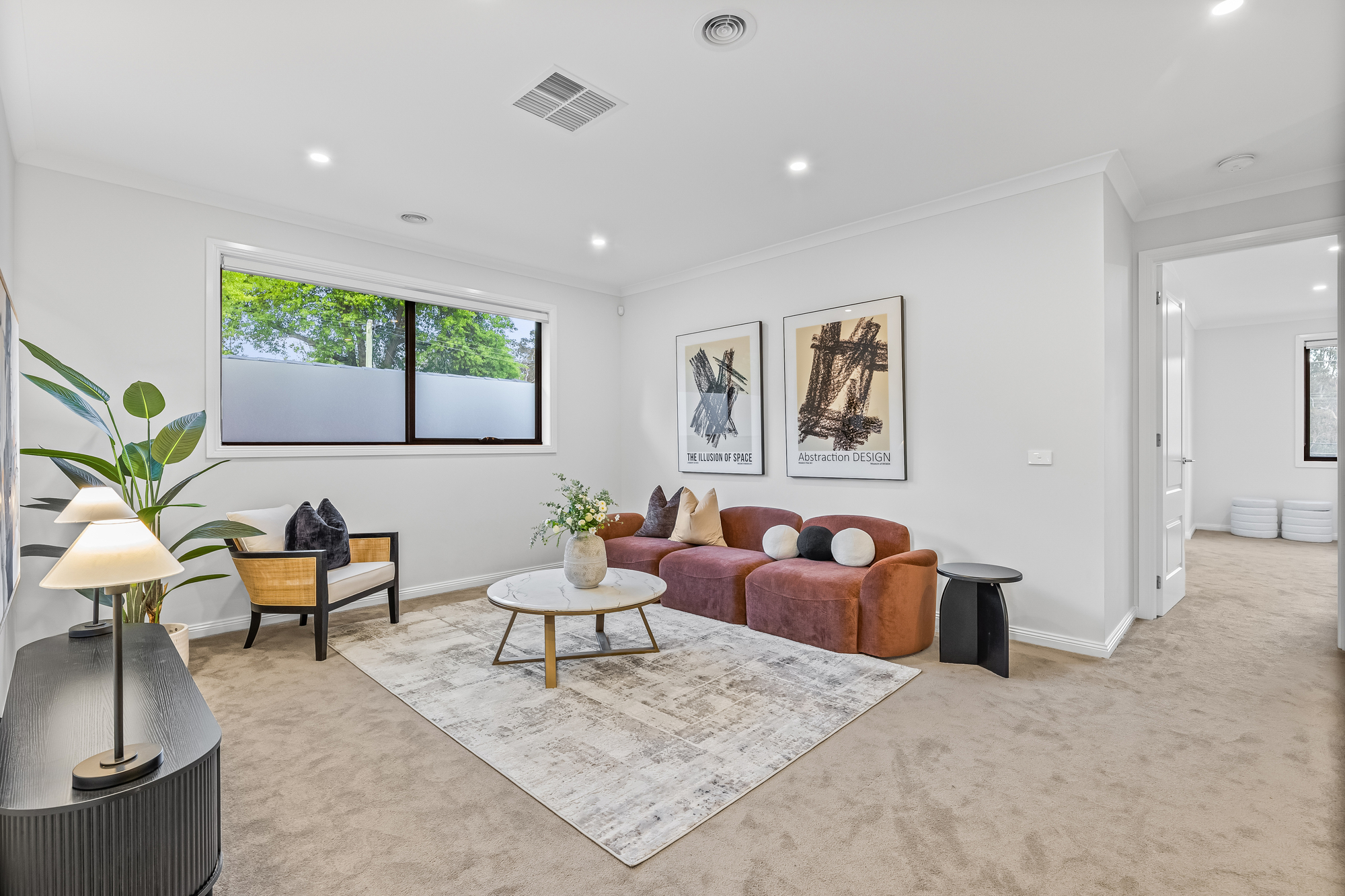 Additional highlights include an upstairs retreat, a study space, a dedicated laundry with external access, and a double garage with extra driveway parking. The home is filled with natural light, enhanced by a security alarm and low-maintenance garden surrounds. Zoned for Laburnum Primary School and Box Hill High School, located close to Box Hill Central, Blackburn Square, Doncaster Westfield, and major transport links, this stylish new build offers a spacious, light-filled haven for modern family living.