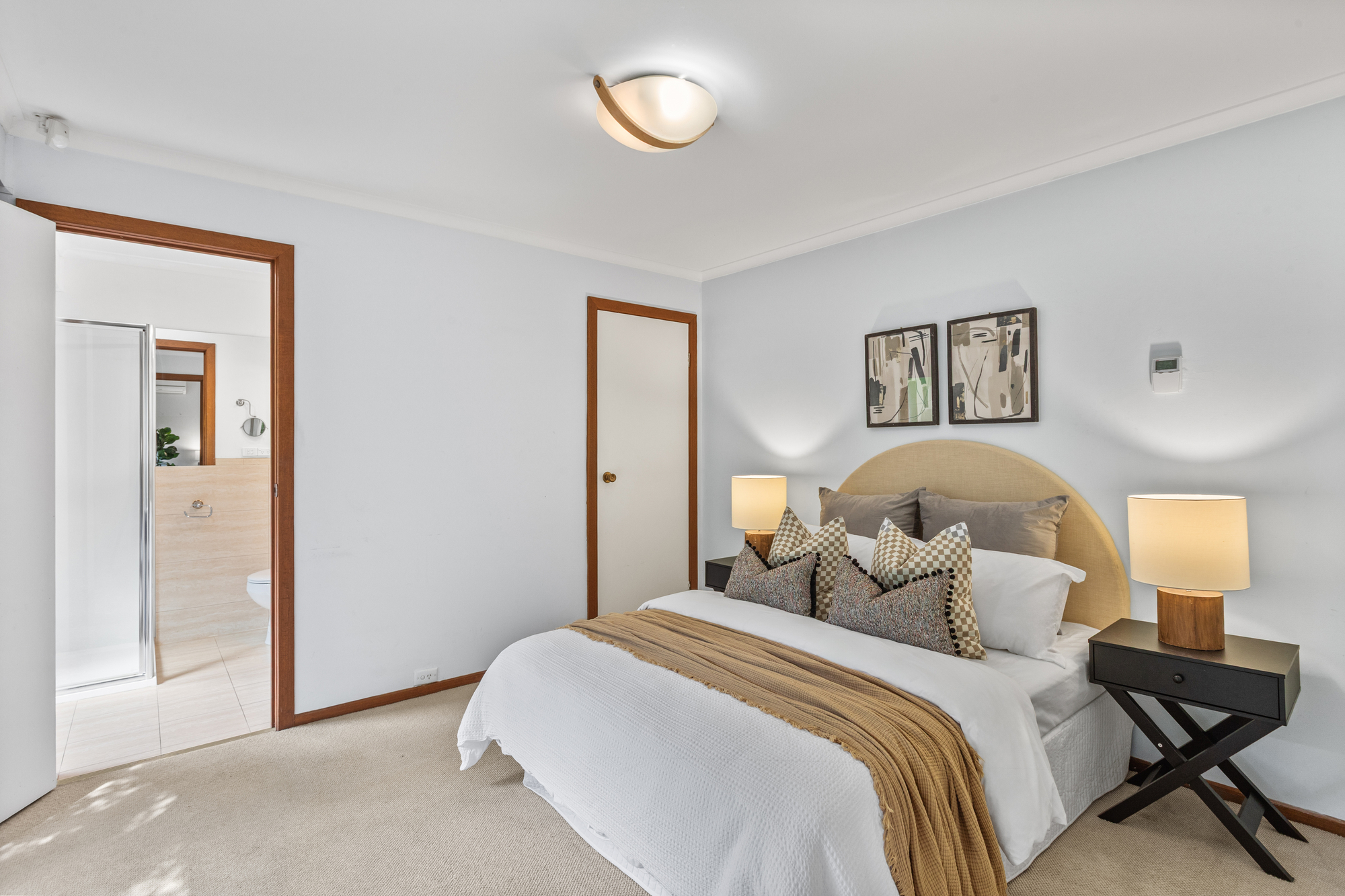 Accommodation includes four well proportioned bedrooms, all carpeted for comfort. The master bedroom features a walk in robe and private ensuite, while the second bathroom presents with a modern, clean tiled finish. Split system heating and cooling throughout, combined with ducted heating, ensures year round comfort.