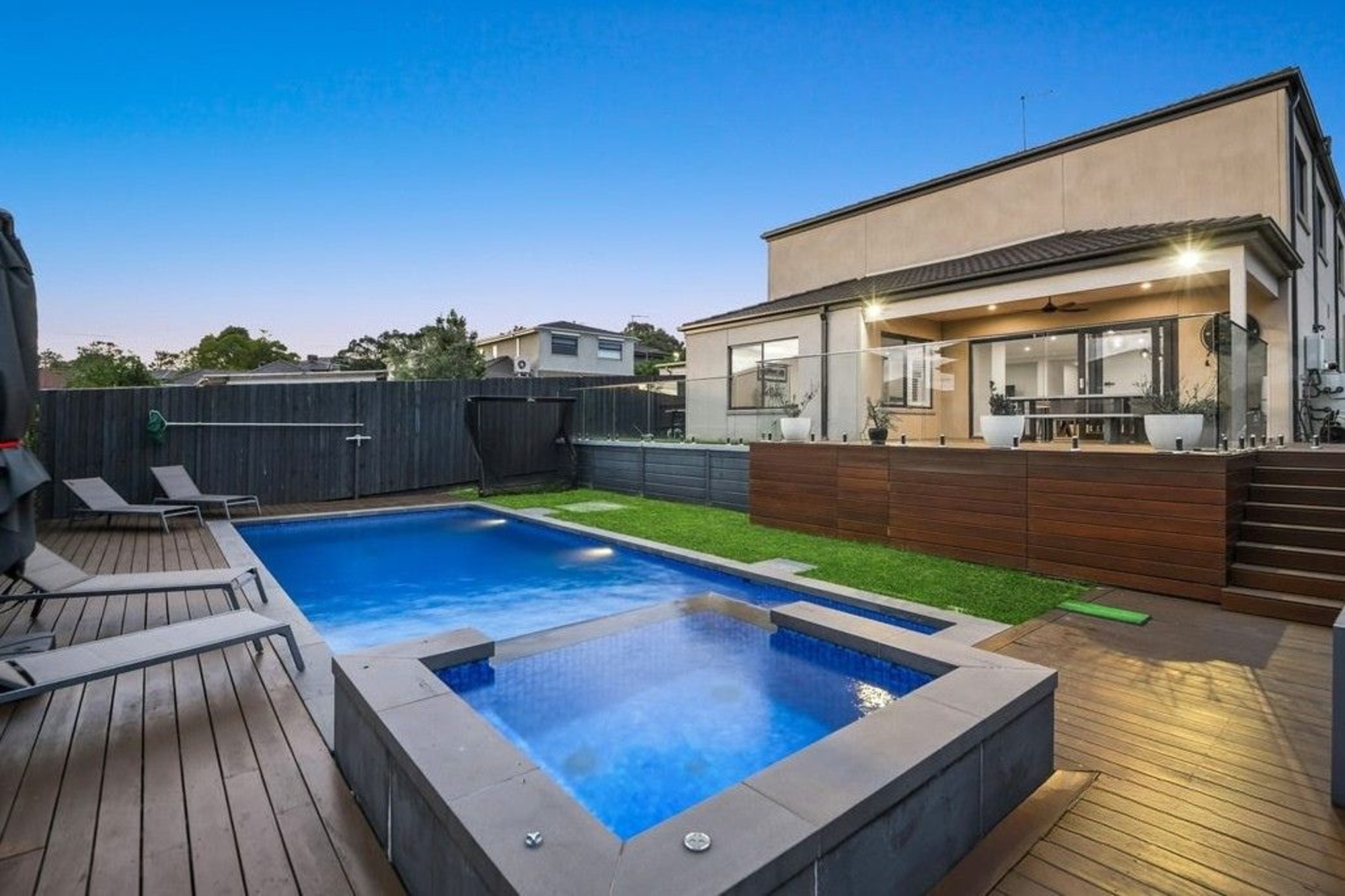 Auction $2,450,000 - $2,550,000This stunning six-bedroom, three-bathroom family residence delivers an exceptional standard of living across a commanding 696sqm (approx.) allotment. Architecturally crafted over 48 squares (approx.), this remarkable home is designed to cater to growing or multi-generational families, blending expansive indoor and outdoor living with elegant finishes and high-end inclusions. With an intelligently zoned floorplan offering flexibility across multiple living areas, a dedicated study, and guest accommodation, every detail has been considered for both grand entertaining and day-to-day comfort. Highlighted by soaring ceilings, rich spotted gum timber flooring, and a sun-drenched open-plan design, the home flows seamlessly from its luxurious interiors to a spectacular outdoor oasis featuring a large deck, beautifully landscaped surrounds, and a sparkling in-ground pool. All of this is set in a peaceful no-through road, ensuring privacy, tranquility, and a true sense of retreat.