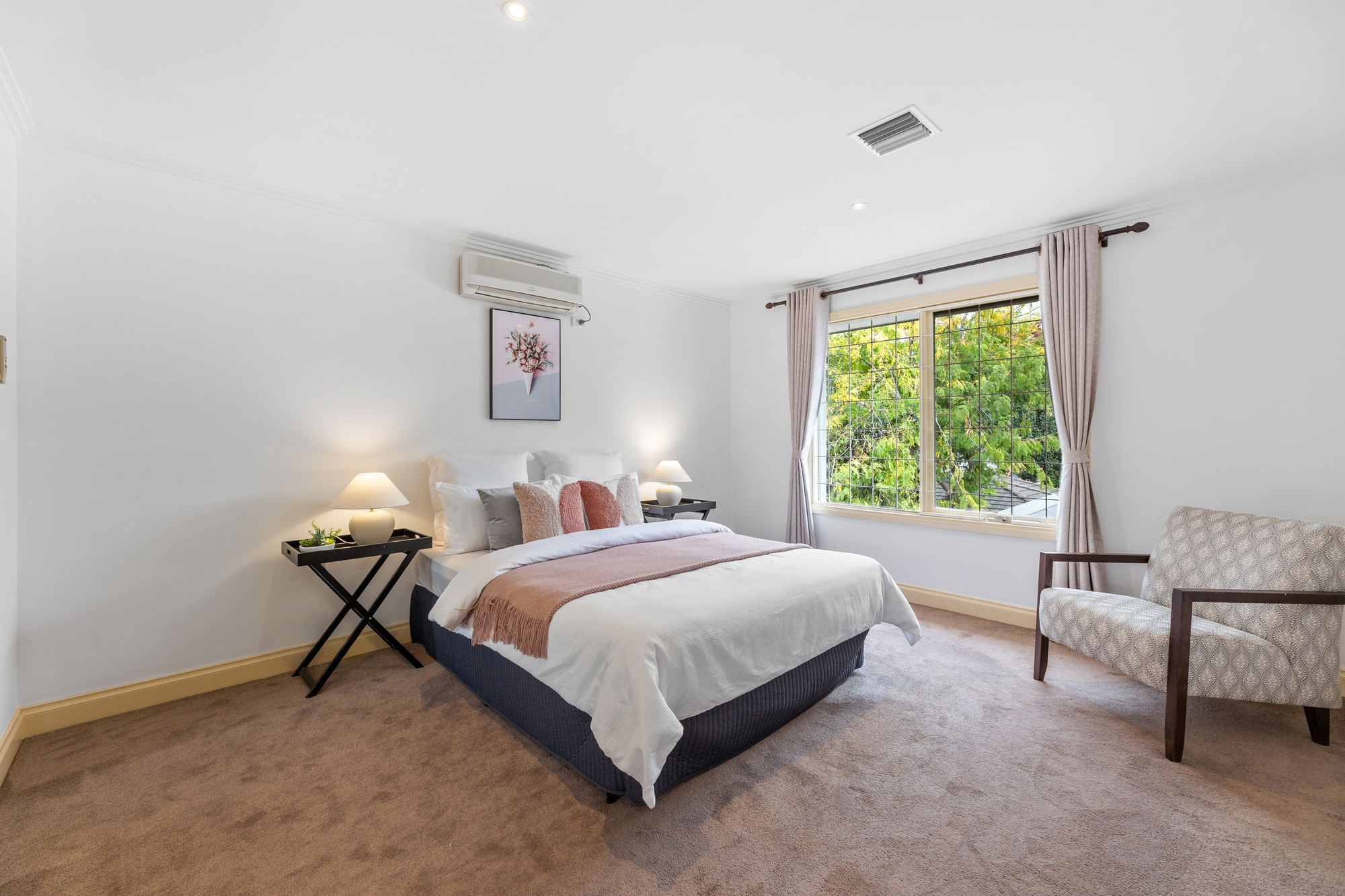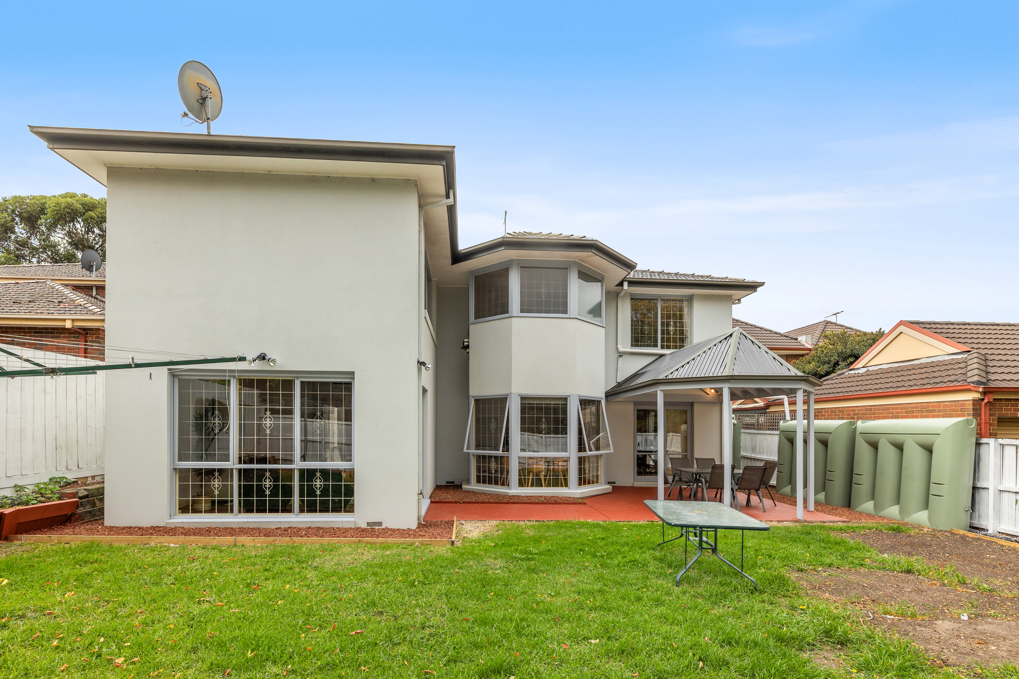 Outdoors, the large backyard includes four water tanks and an undercover entertaining area, perfect for alfresco dining year-round.
