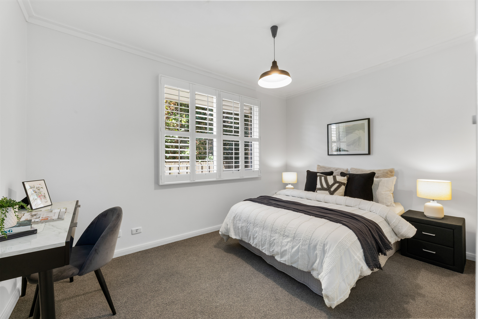 The home is equipped with modern features, including electronic eufy smart door locks for enhanced convenience and security. Inside, you’ll find shutters and privacy screens throughout, providing both sun protection and a sense of privacy, while allowing natural light to filter into the rooms.
