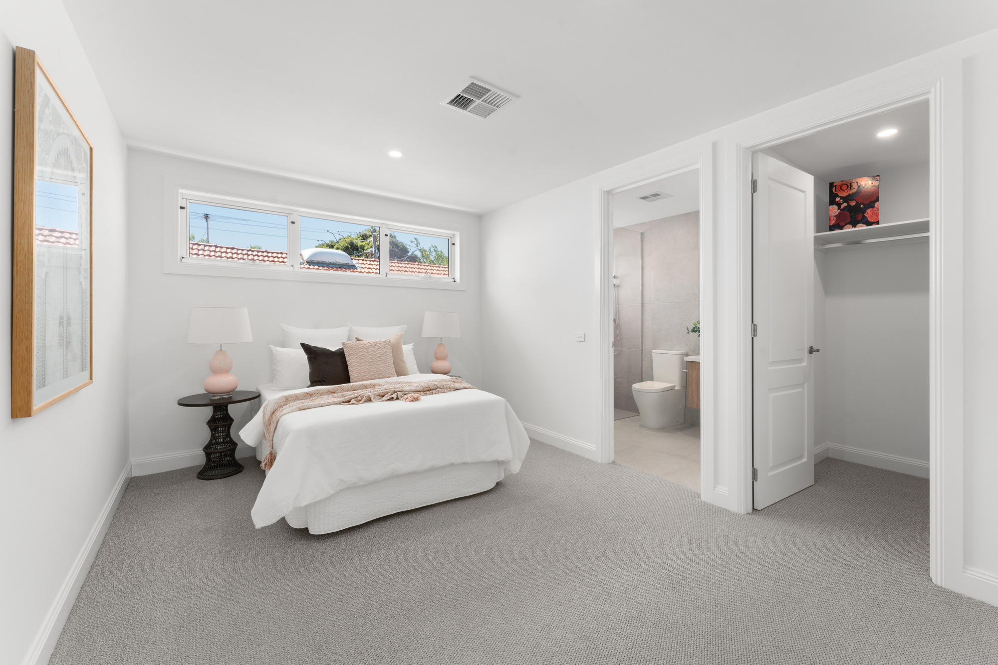 Upstairs, the master suite is a luxurious private retreat featuring dual walk-in dressing rooms, a generous sitting area, and a hotel-style ensuite with freestanding bath. Three additional bedrooms — each with its own ensuite and walk-in robe — are thoughtfully arranged around a central landing. A fifth bedroom with ensuite on the ground floor offers excellent flexibility for guests or multigenerational living.