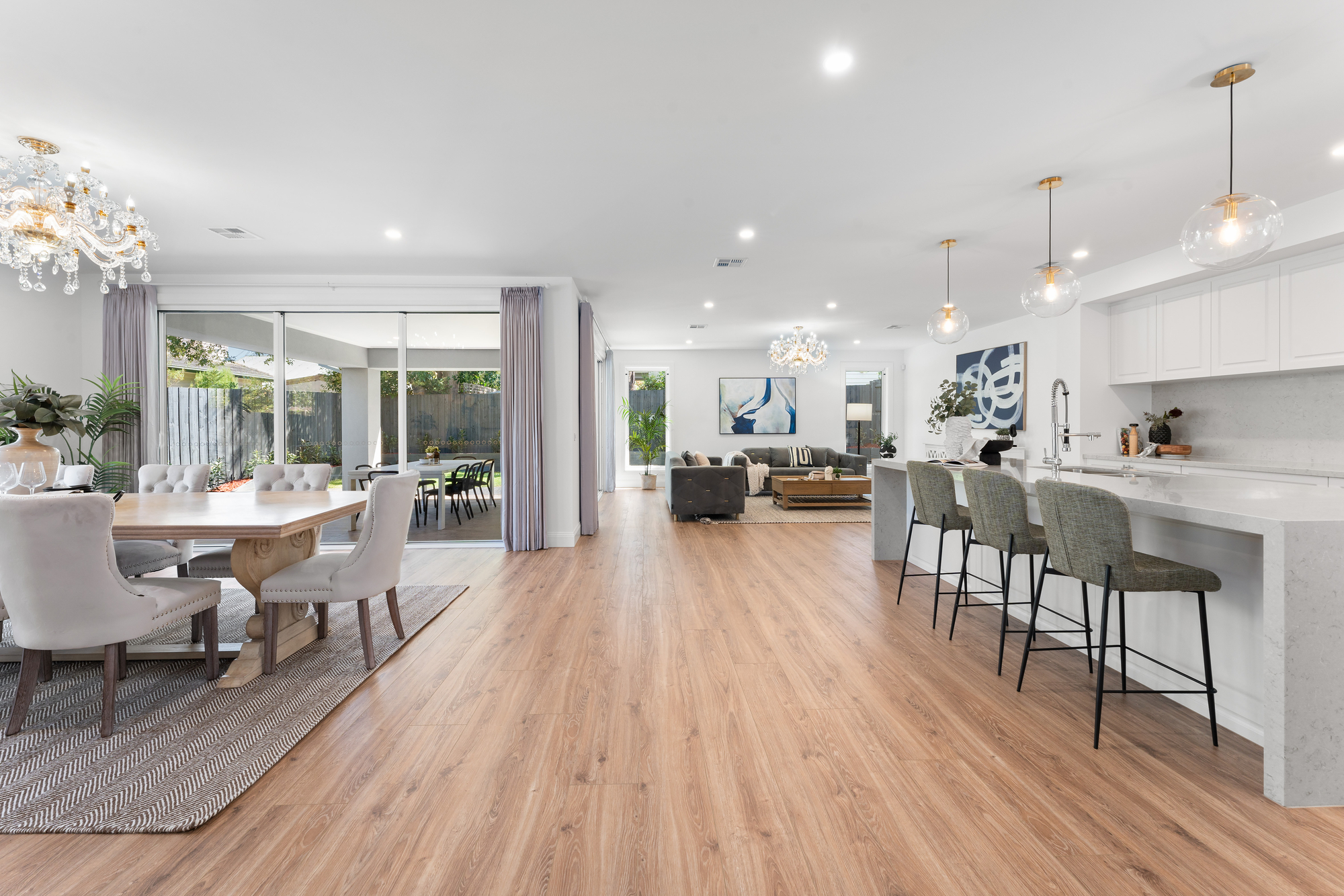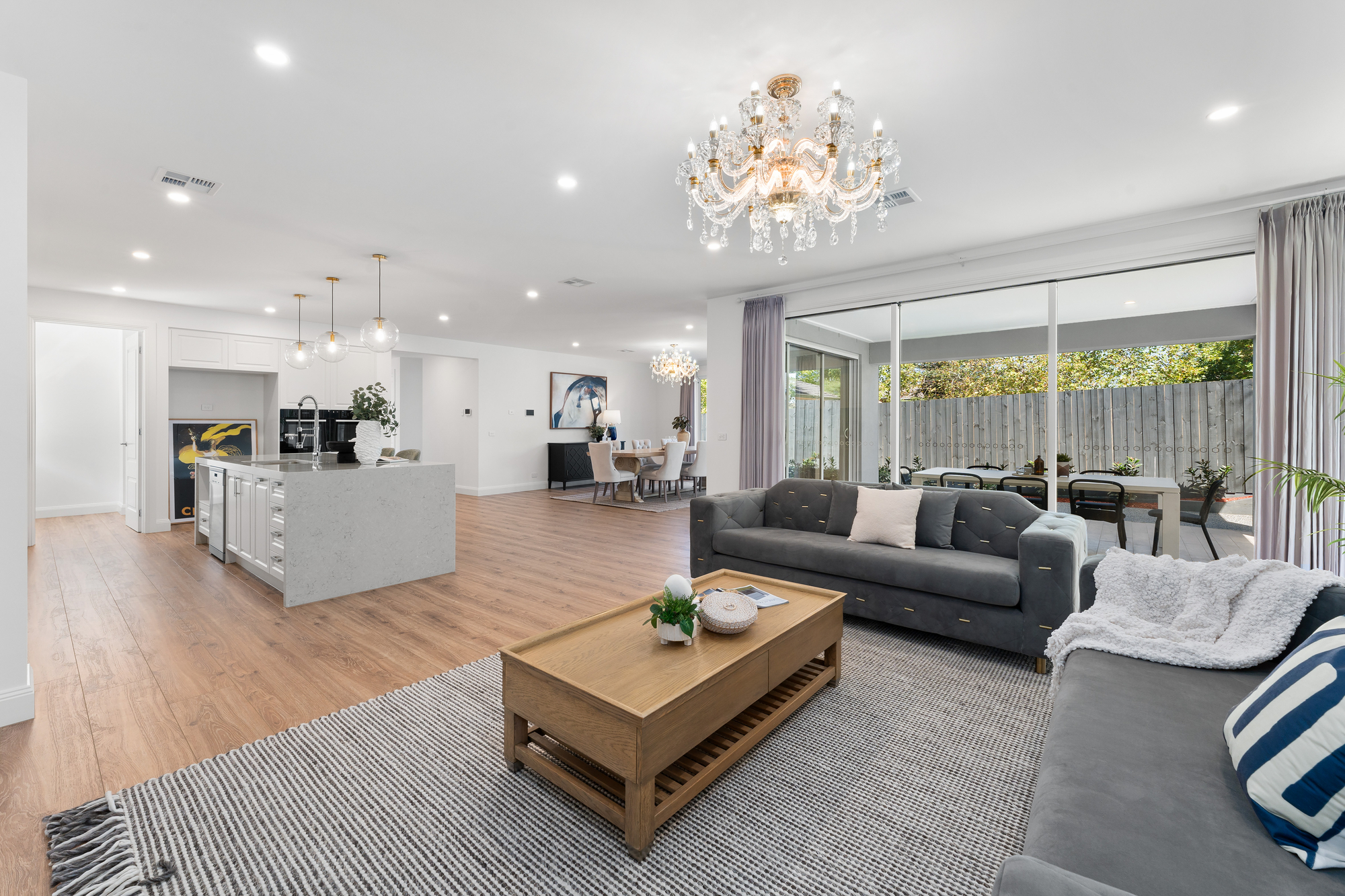 Throughout the residence, high-end finishes, bespoke detailing, and refined lighting elevate the living experience. Indoor and outdoor zones connect seamlessly to a covered alfresco area and north-facing backyard, providing sun-filled outdoor living that is perfect for entertaining, children’s play, or relaxed family enjoyment year-round.