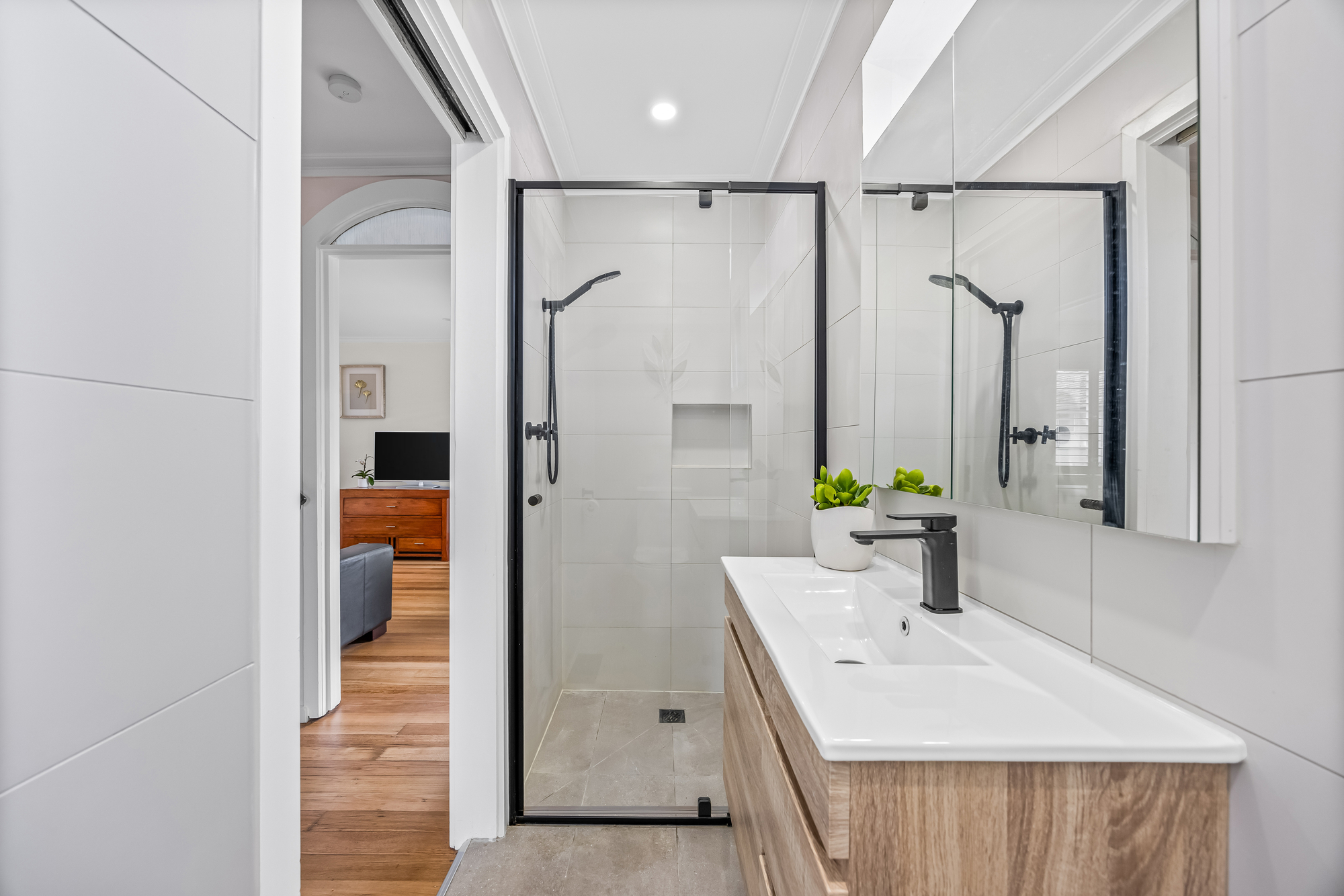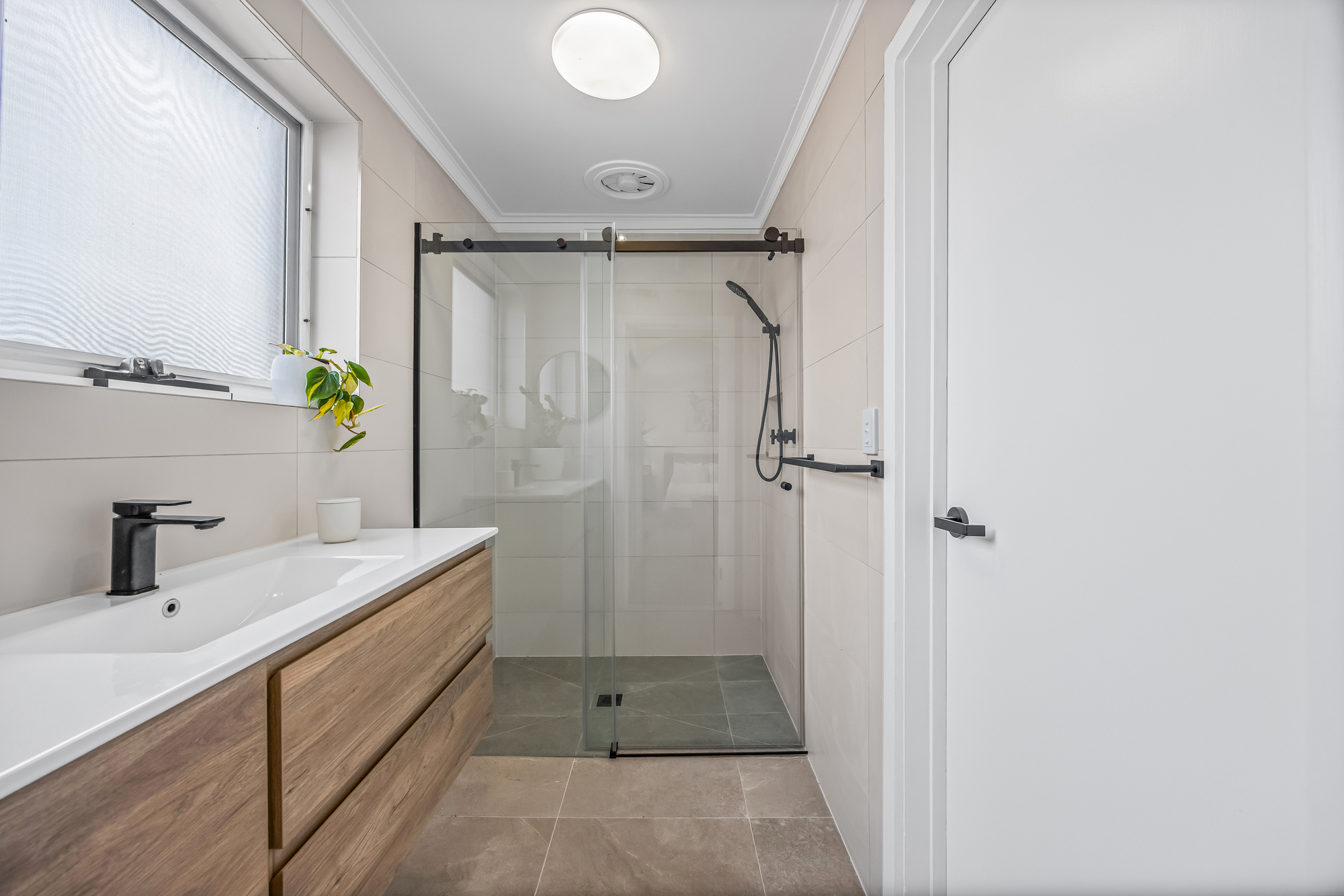 Four generous bedrooms provide comfort and flexibility. All include built-in robes and new plush carpets, with one ground-floor bedroom featuring floorboards and a nearby bathroom. The master bedroom boasts an ensuite, and all three bathrooms have been fully renovated with floor-to-ceiling tiles, single vanities, and a bathtub. Additional highlights include a fully equipped laundry with stone benchtops, a spacious garage with laneway access, and 17 solar panels for minimal electricity costs.
