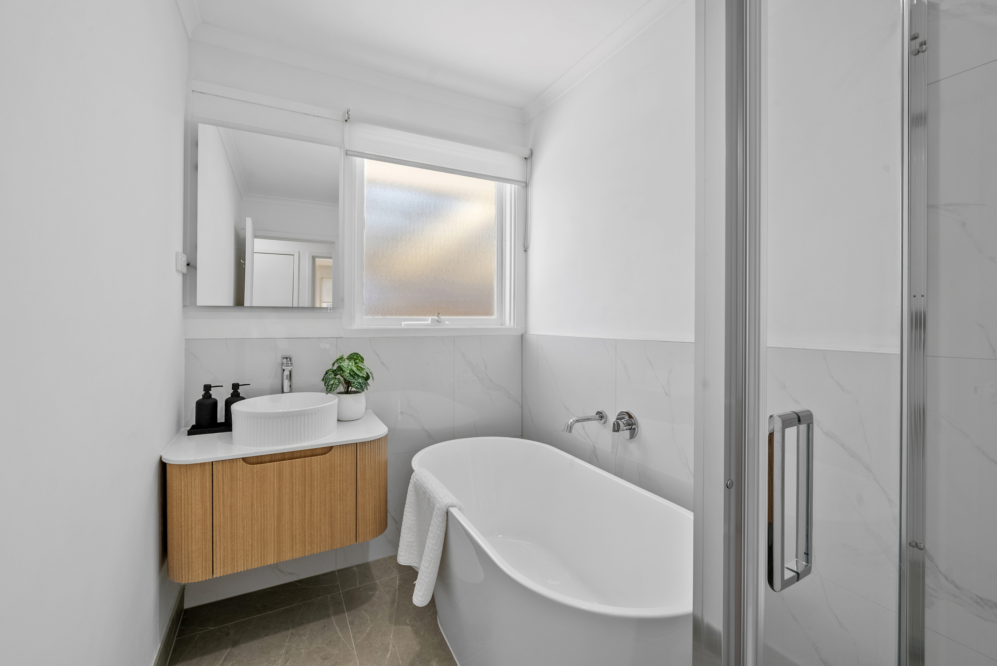 Three well proportioned bedrooms provide excellent accommodation. The master suite includes a walk in robe, great storage and private ensuite with original tile work and vanity. The shared bathroom has been tastefully renovated with floor to vanity tiles, a freestanding bath, floating vanity and separate shower. A separate toilet adds convenience for busy households.