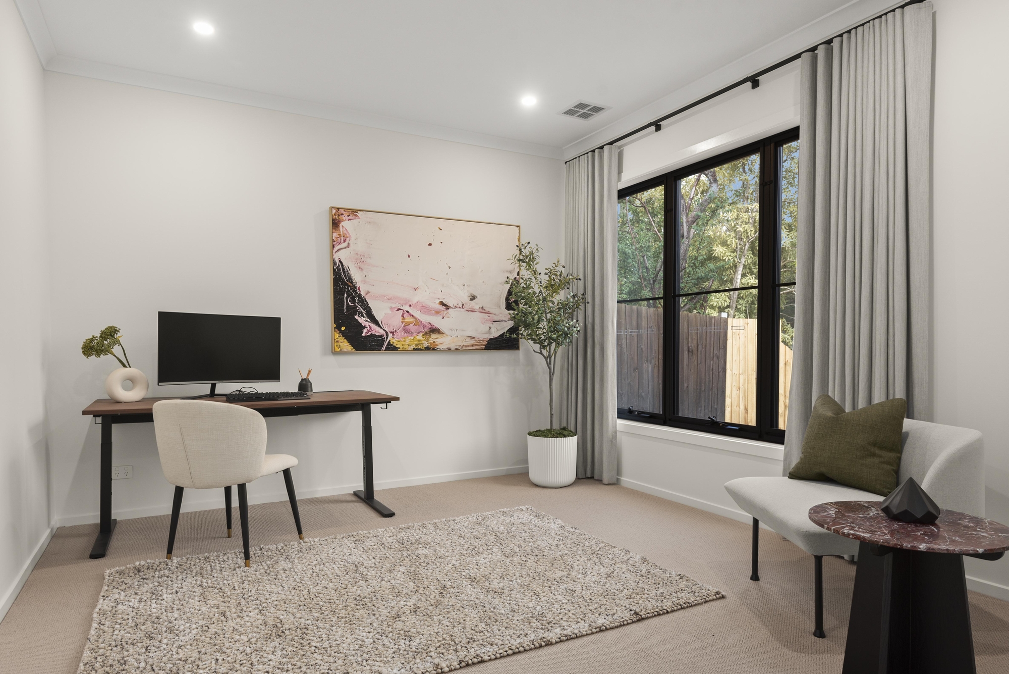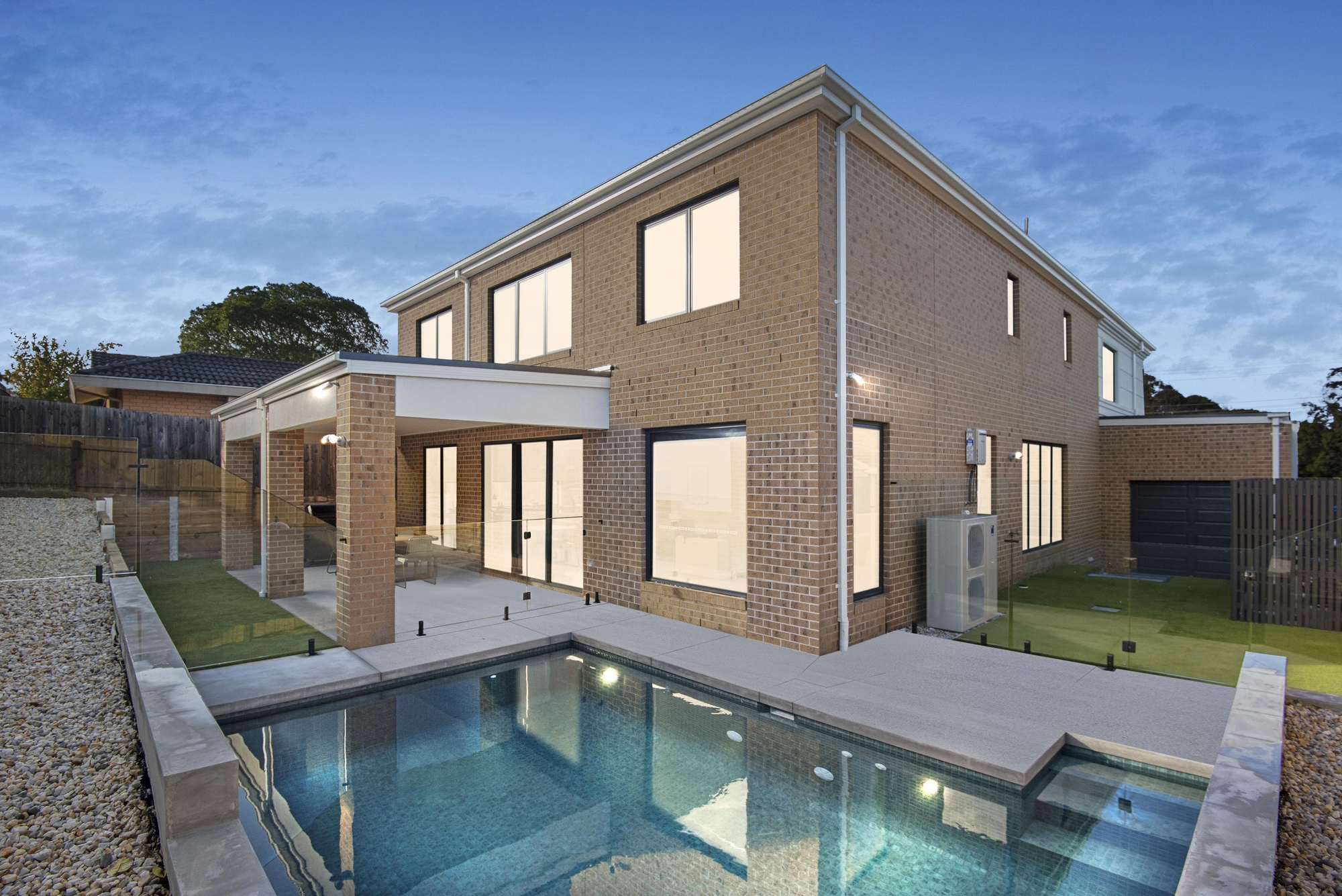 Flowing outdoors, discover a low-maintenance backyard with a covered alfresco zone, and a heated pool – promising year-round family fun and relaxation. Notable highlights include keyless entry, CCTV, modern flooring, ducted heating and refrigerated cooling, double-glazed windows, solar electricity (30 panels), and an automatic gate leading to a double auto garage with a Tesla electric vehicle charger and a mudroom.