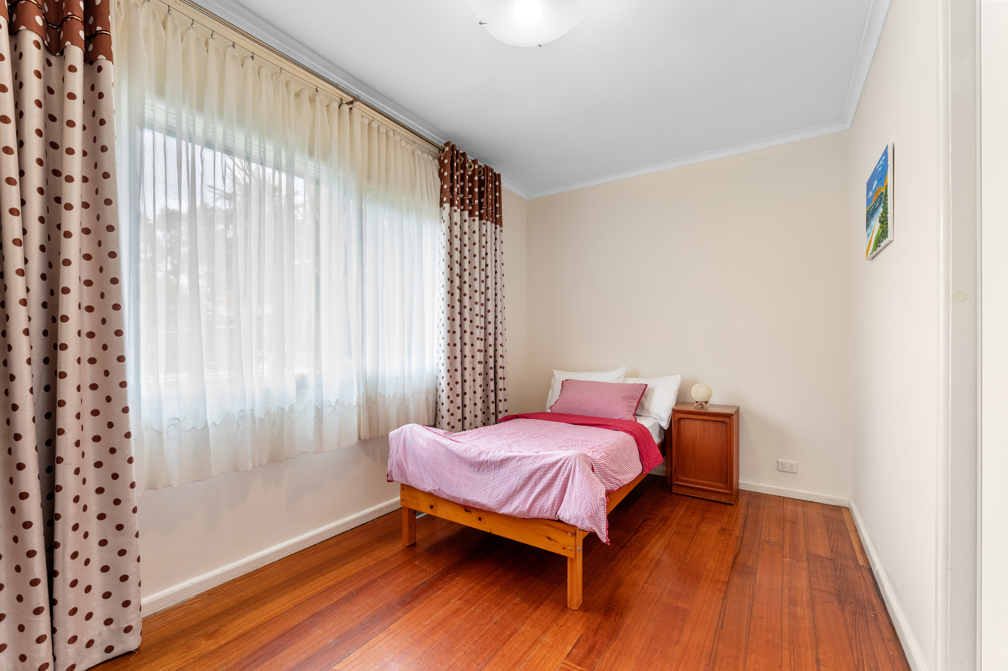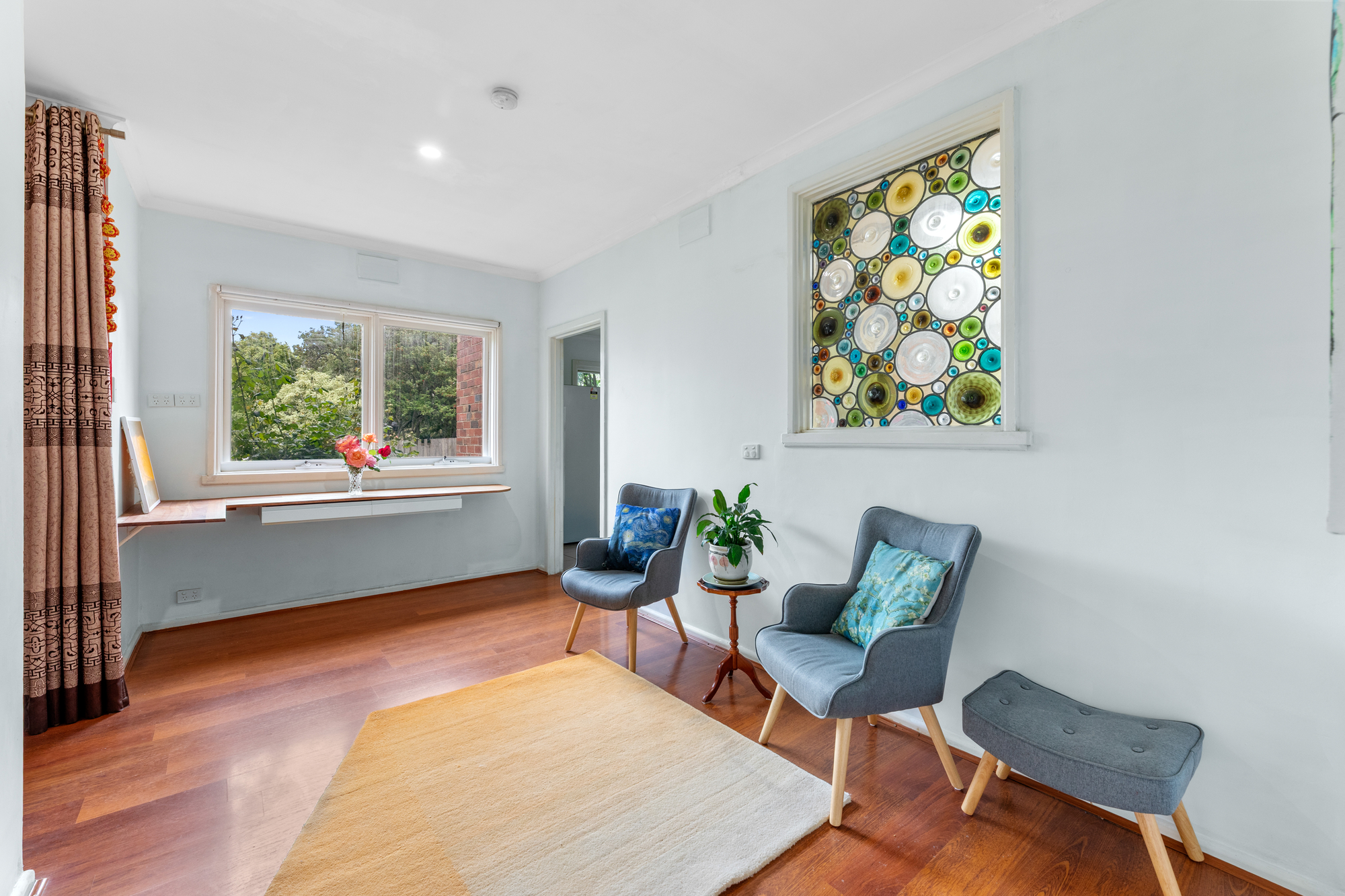 Three well-proportioned bedrooms each enjoy peaceful garden outlooks, serviced by a neat central bathroom that offers scope for future modernisation. Ducted heating and air conditioning ensure year-round comfort, while the thoughtful layout supports a range of family and lifestyle needs.
