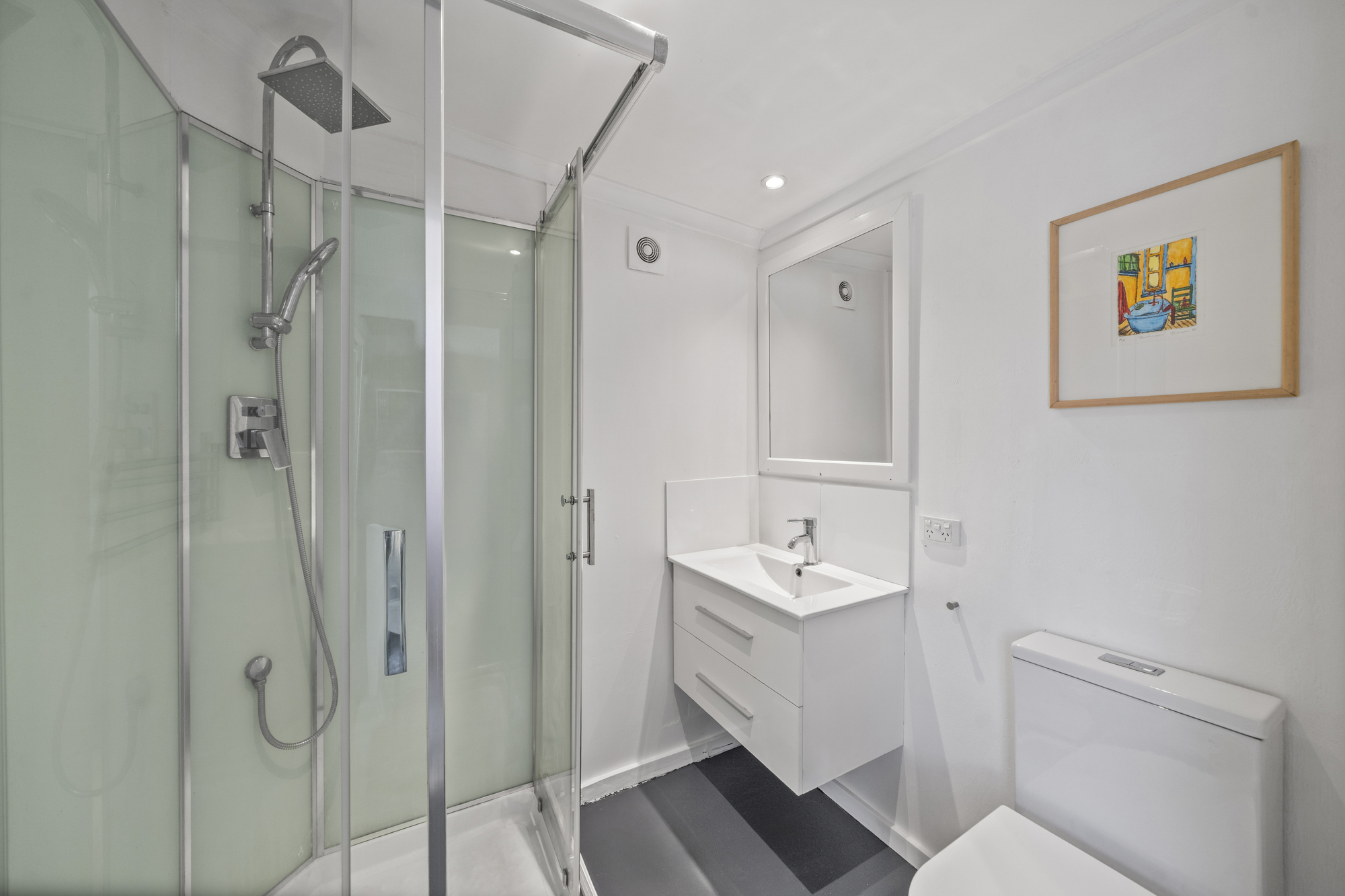 Modern comforts have been thoughtfully introduced, including ducted heating and cooling, a modernized bathroom with rain shower, updated laundry with WC, and plush carpeting in the bedrooms. Accommodation within the main residence includes well-proportioned bedrooms with excellent natural light and flexible layout options to suit family living.