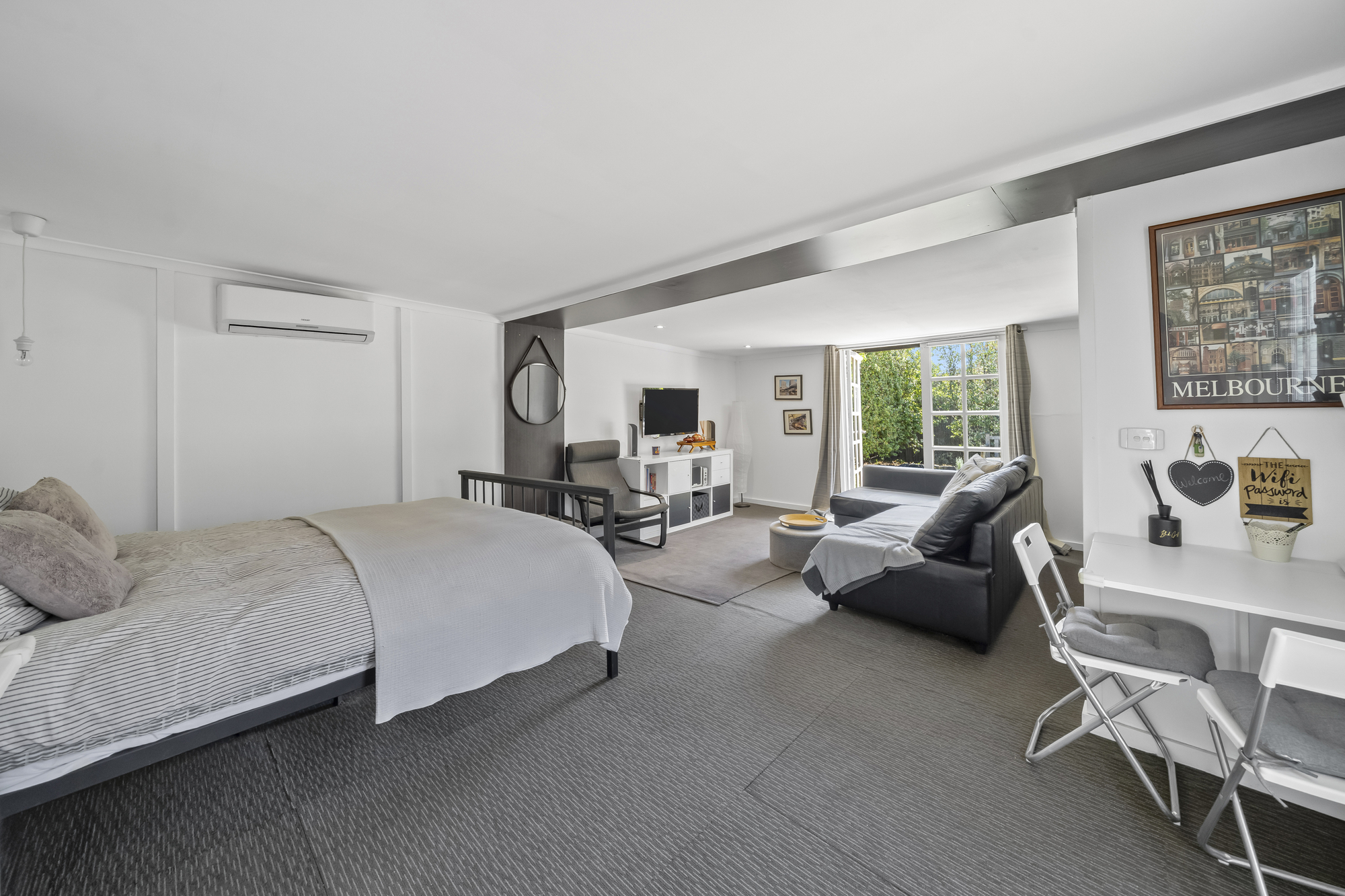 A standout feature of the property is the fully self-contained bungalow, offering exceptional flexibility. With French doors opening to its own private courtyard, the bungalow includes a large bedroom/living area, clever kitchenette, modern bathroom, and private driveway access. This space is ideal for extended family, guests, rental income, or a home business setup, significantly enhancing lifestyle and investment appeal.