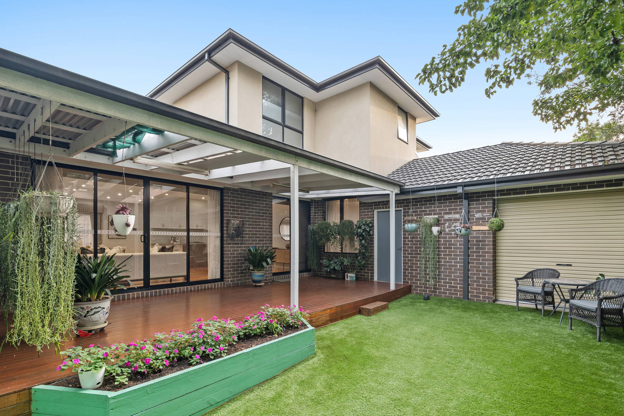 Step outside to the low-maintenance backyard, featuring an undercover decked alfresco area, ideal for entertaining family and friends, or simply relaxing in a private, tranquil setting. The double car garage with a rear roller door and understairs storage add practical value to the home, while the water tank provides additional efficiency.