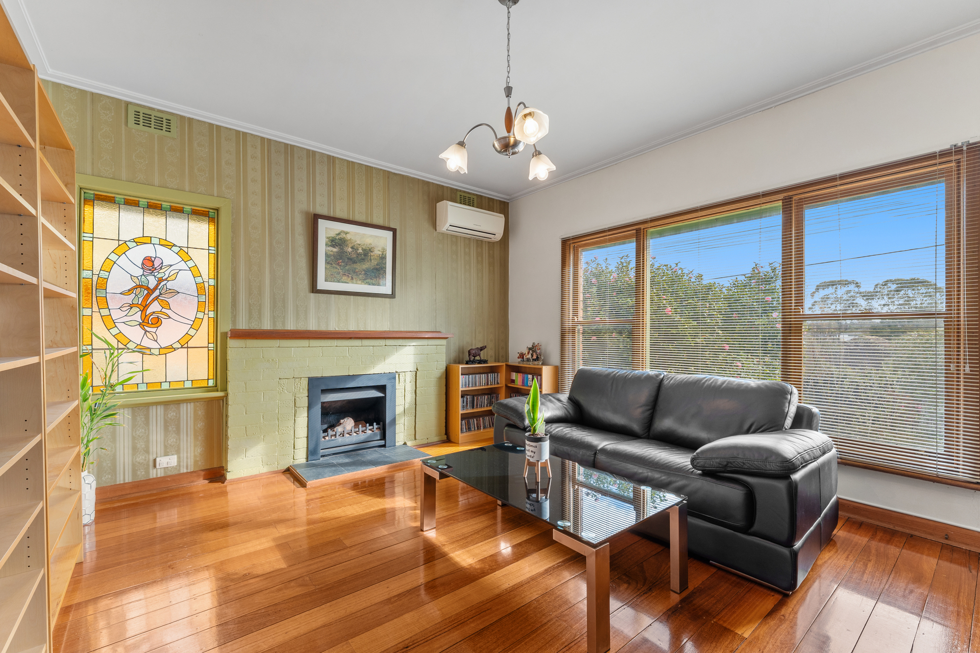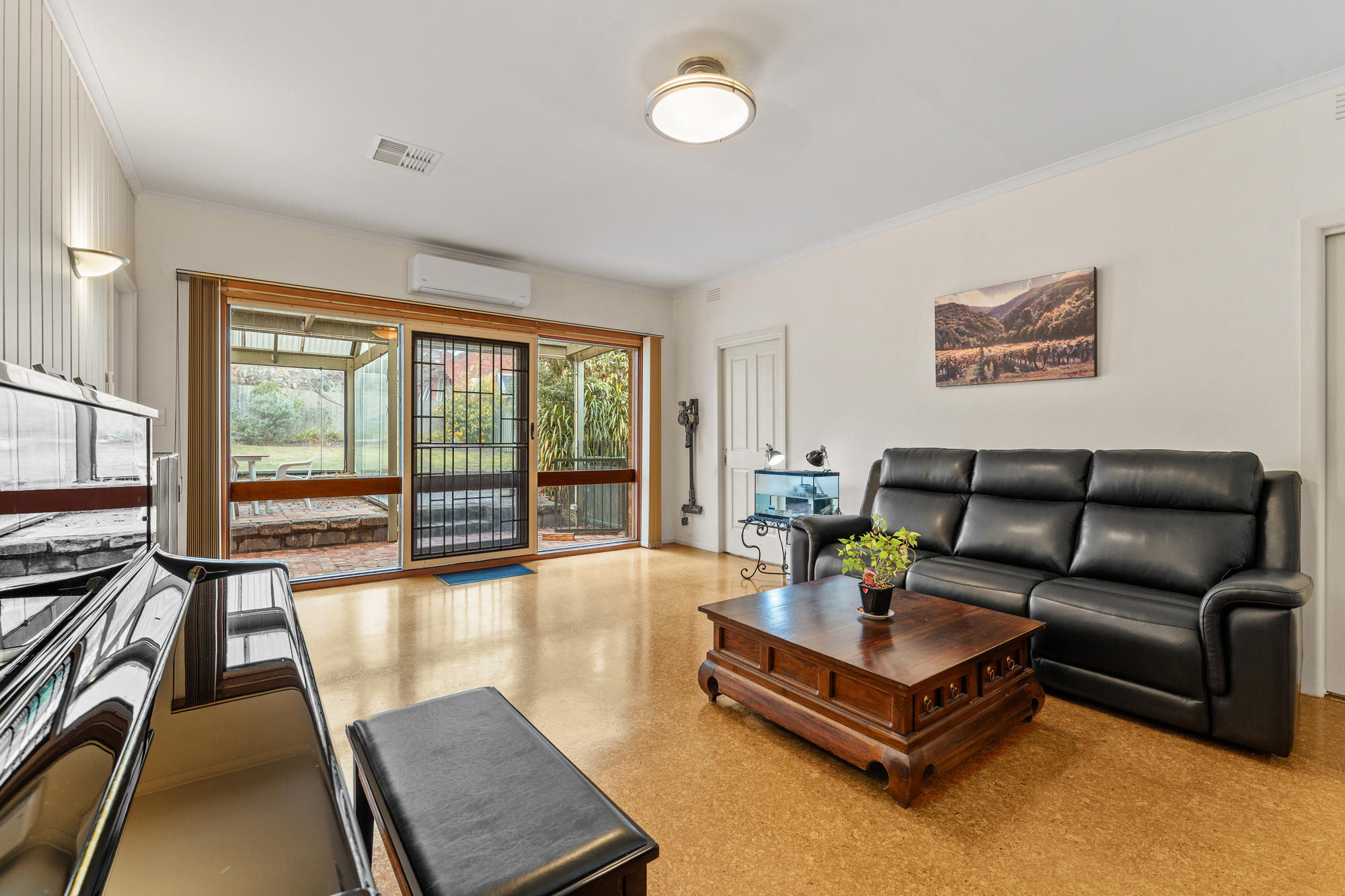 Step inside to discover a warm formal living area adorned with a stunning stained-glass window, timber floors, and gas ducted heating throughout. The home is climate-controlled year-round with a split air-conditioning system and individual units in the study, living, and lounge for personalised comfort.
