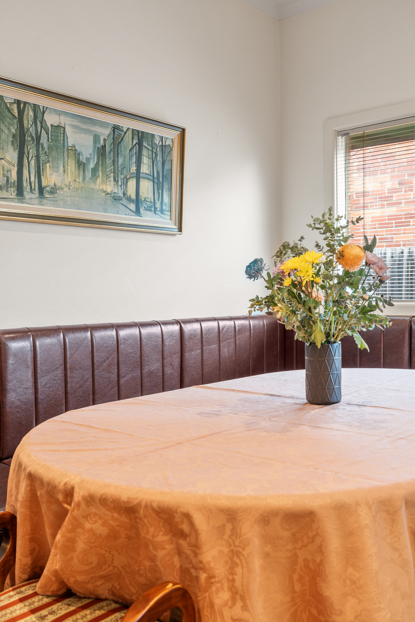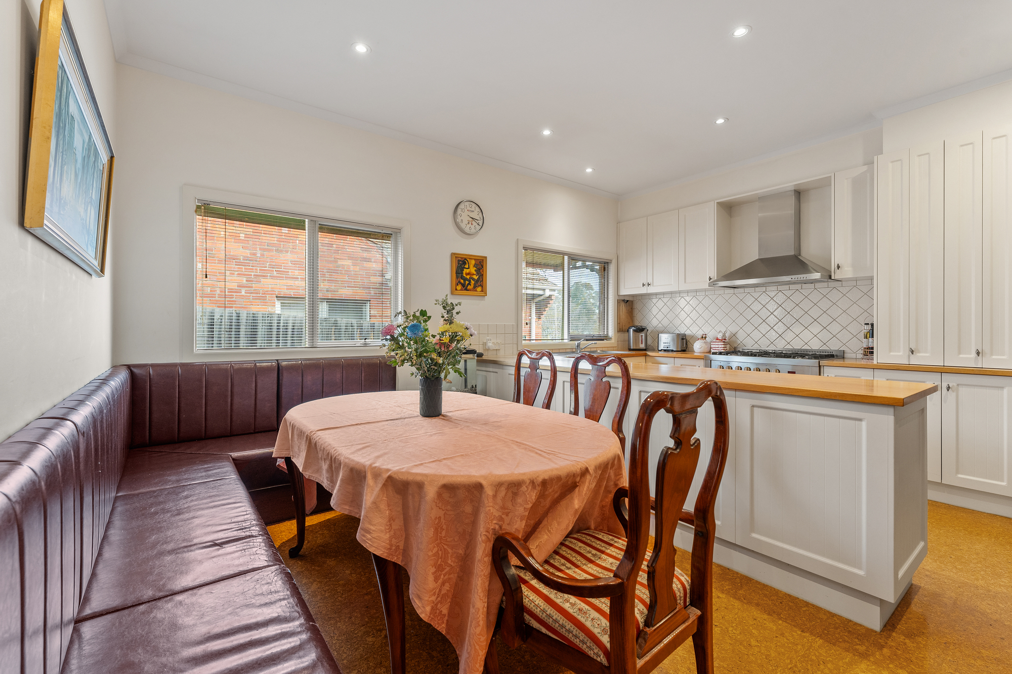 The spacious kitchen is designed for both everyday meals and entertaining, featuring a 5-burner gas cooktop, generous storage, and a large banquette dining seat perfect for family gatherings. A single carport offers secure off-street parking, and the layout provides flexibility for work-from-home needs or growing families.