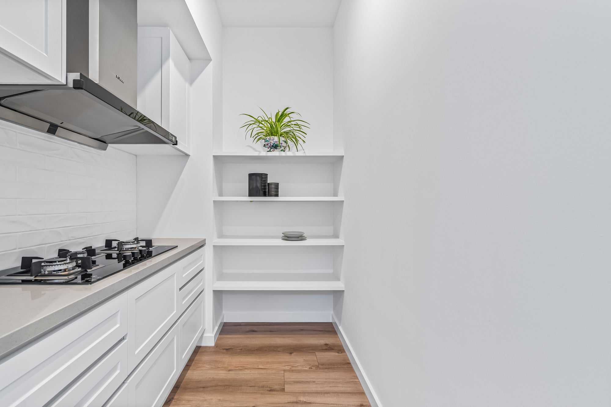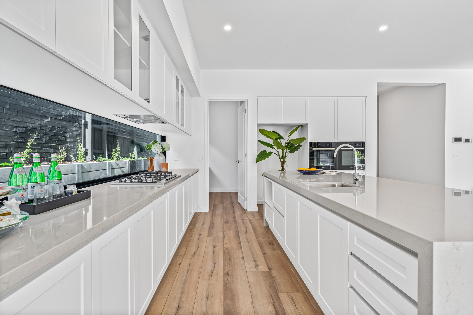 At the heart of the home is a dual kitchen setup with premium Miele appliances, stone finishes, and a full butler’s pantry complete with stovetop and sink – perfect for entertaining. Modern comforts include high ceilings, zoned central heating and cooling, a security alarm system, and a double garage with internal access.
