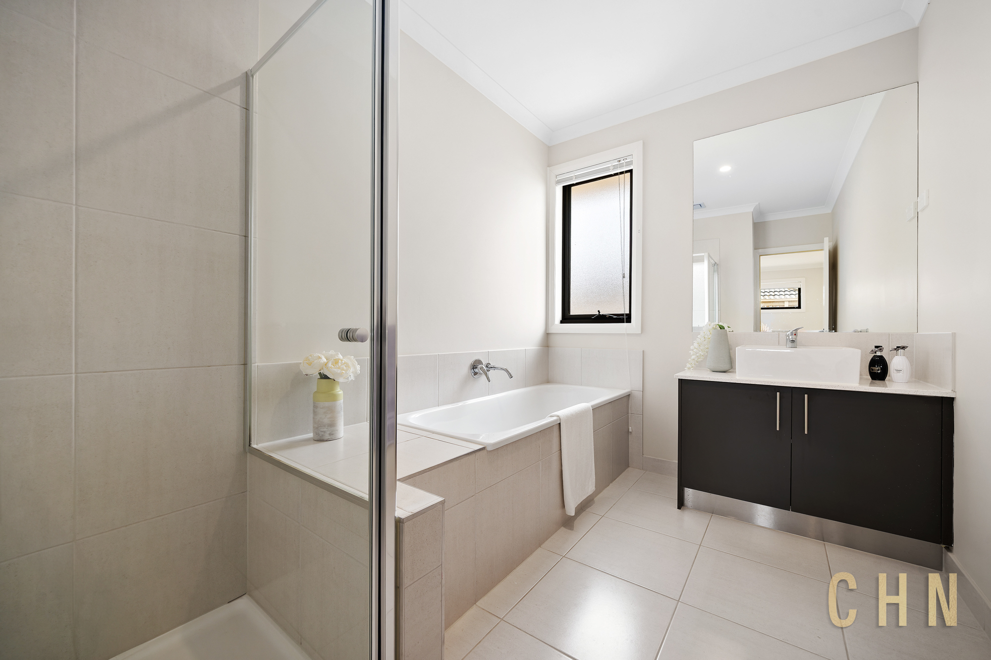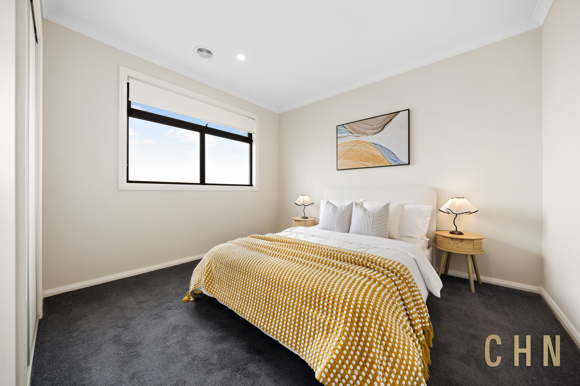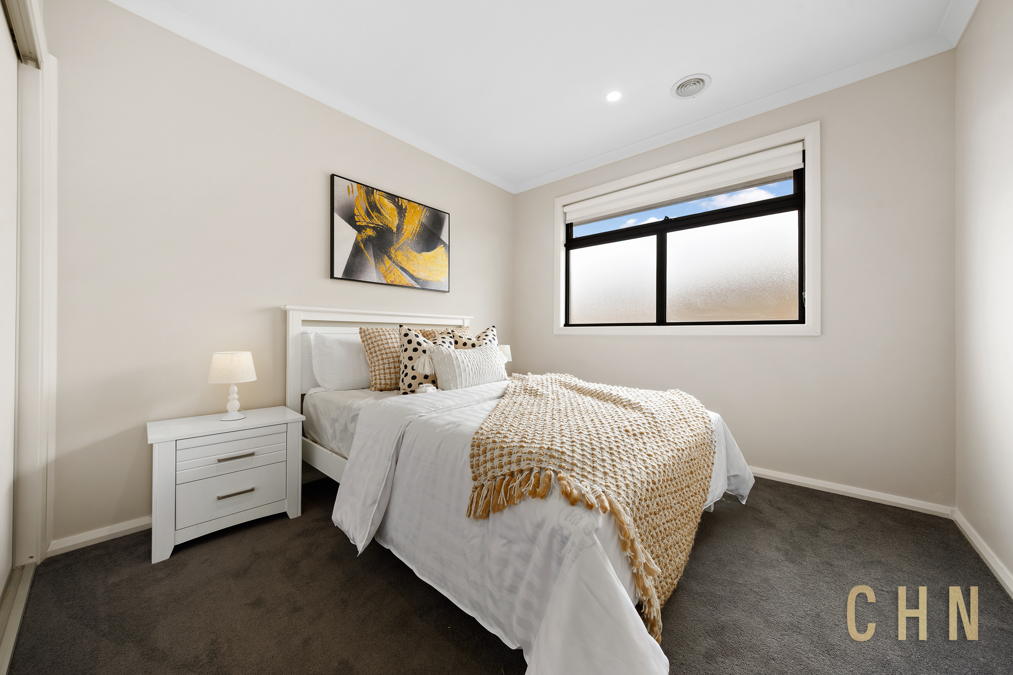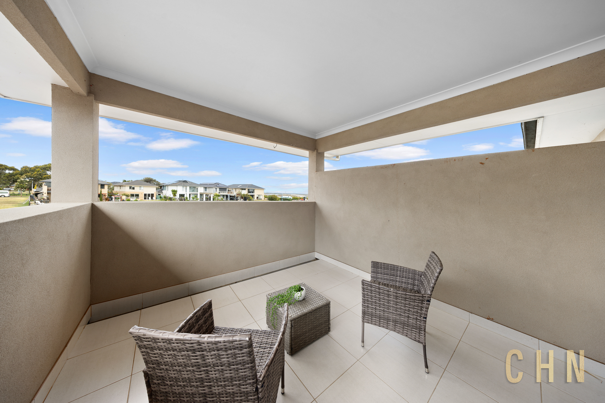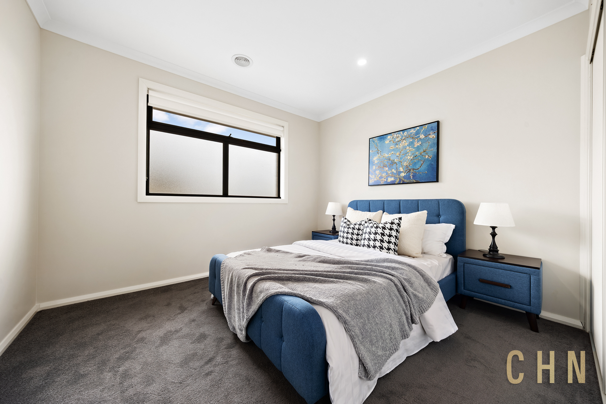 Upstairs, a living area opens to a balcony with a tranquil lake outlook, while the master bedroom enjoys a private balcony, walk-in robe, and ensuite. The remaining bedrooms are fitted with built-in robes and are serviced by a central bathroom featuring a walk-in shower and bathtub.