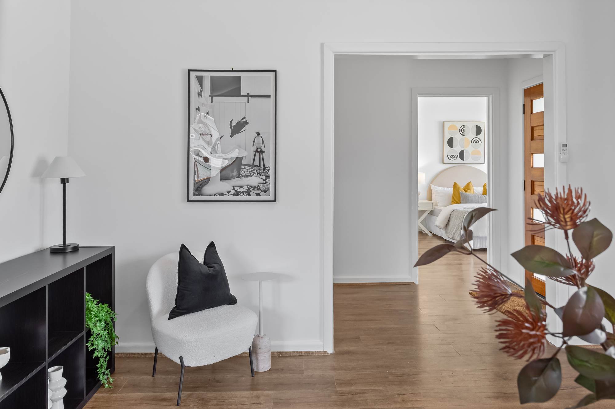 Behind its neat rendered façade, the home unfolds into a practical and inviting layout. Timber flooring flows throughout the living and dining areas, while tiled finishes define the kitchen and bathrooms for durability and ease. Freshly painted throughout, the interiors feel bright, clean and ready to enjoy.