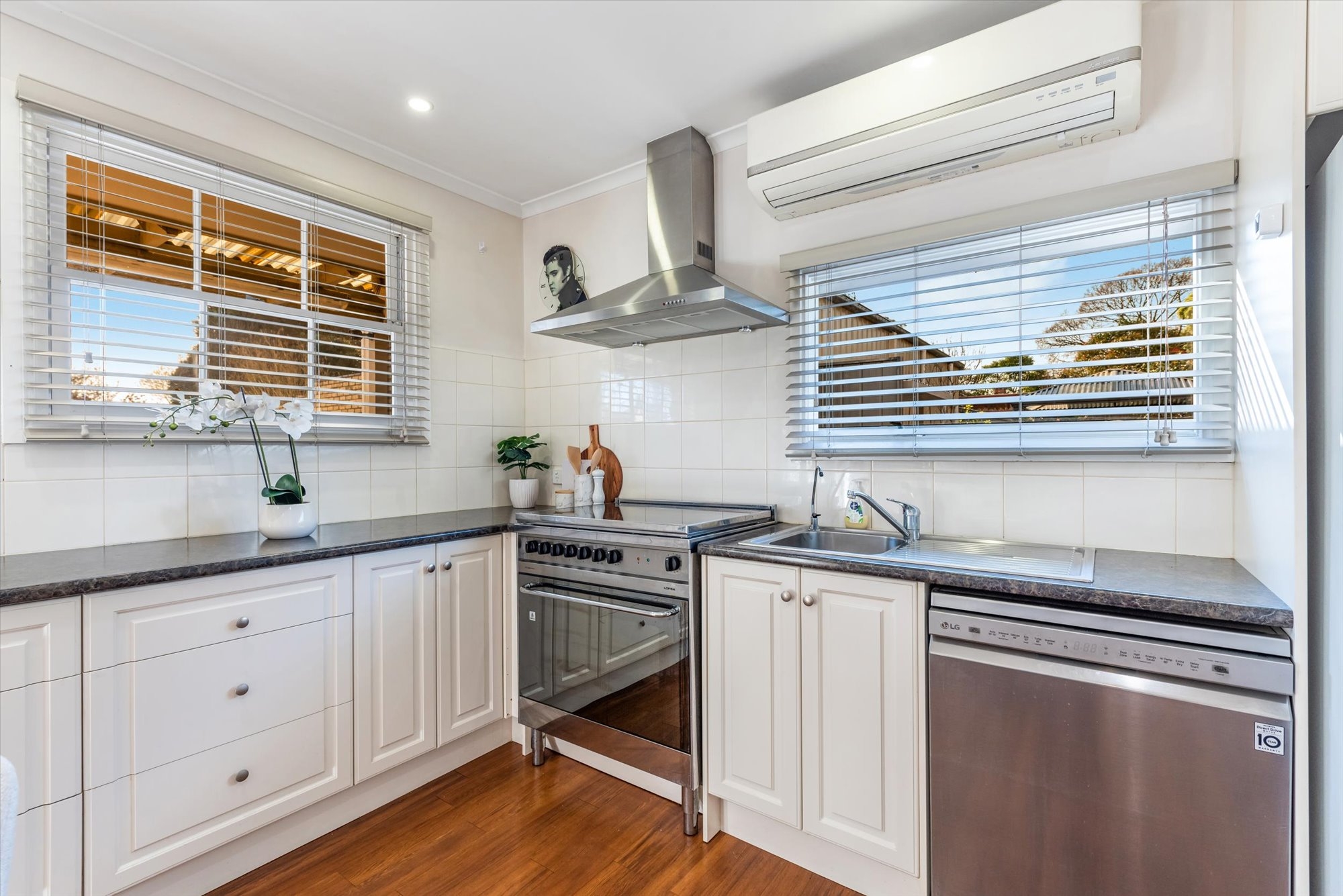 Setting the tone for the warm and welcoming ambience throughout, the entrance hall leads to a lounge room with adjoining meals zone and open-plan kitchen. You’ll handle everyday dining and gatherings with ease with a five-burner gas cooktop, a 90cm oven, and a dishwasher. All four bedrooms come with built-in robes and are serviced by a central bathroom featuring a double vanity and a dual-head shower. A second bathroom, complete with laundry facilities, ensures convenience for busy family life.