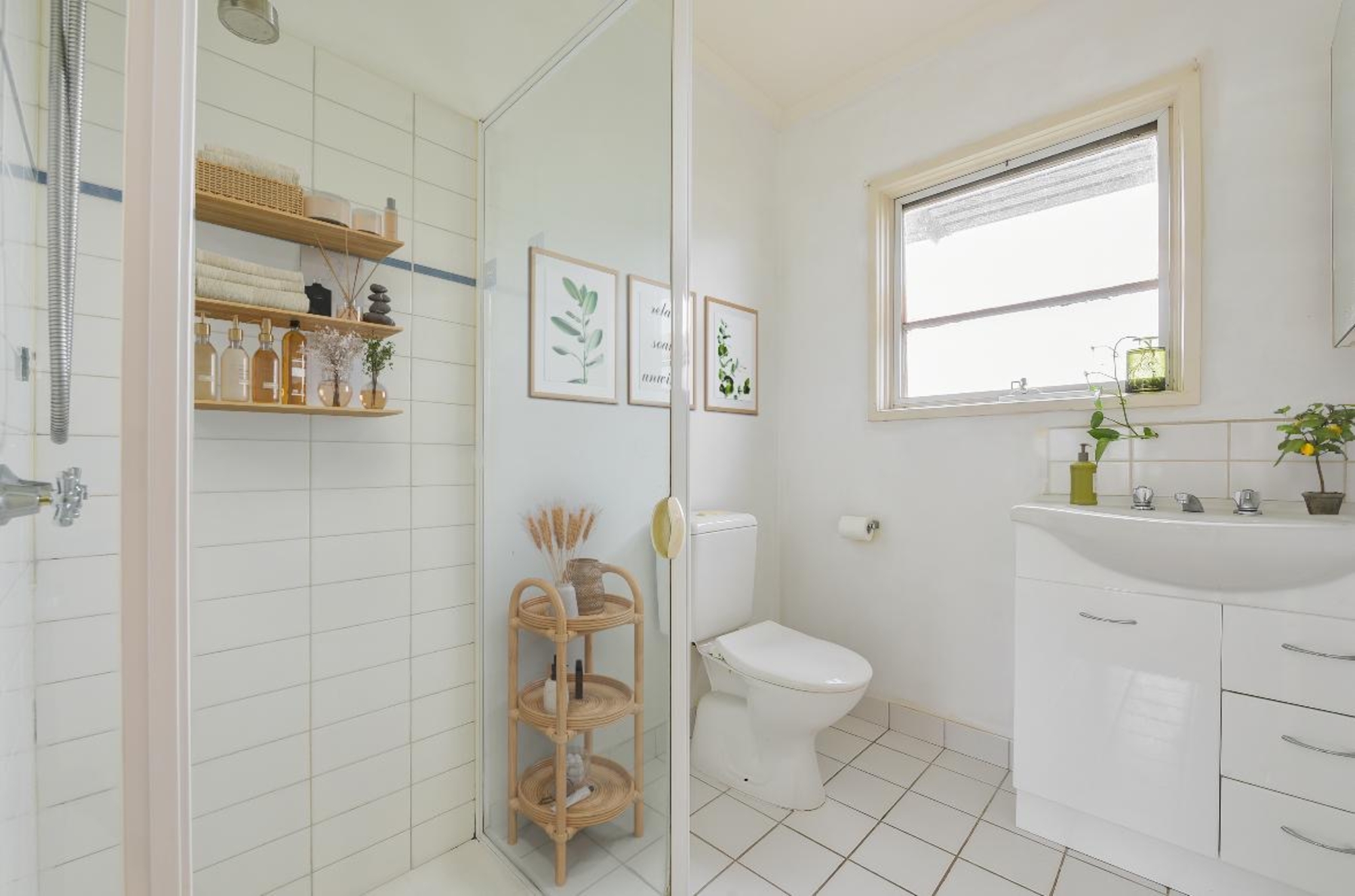 – Central bathroom with modern fixtures and separate laundry