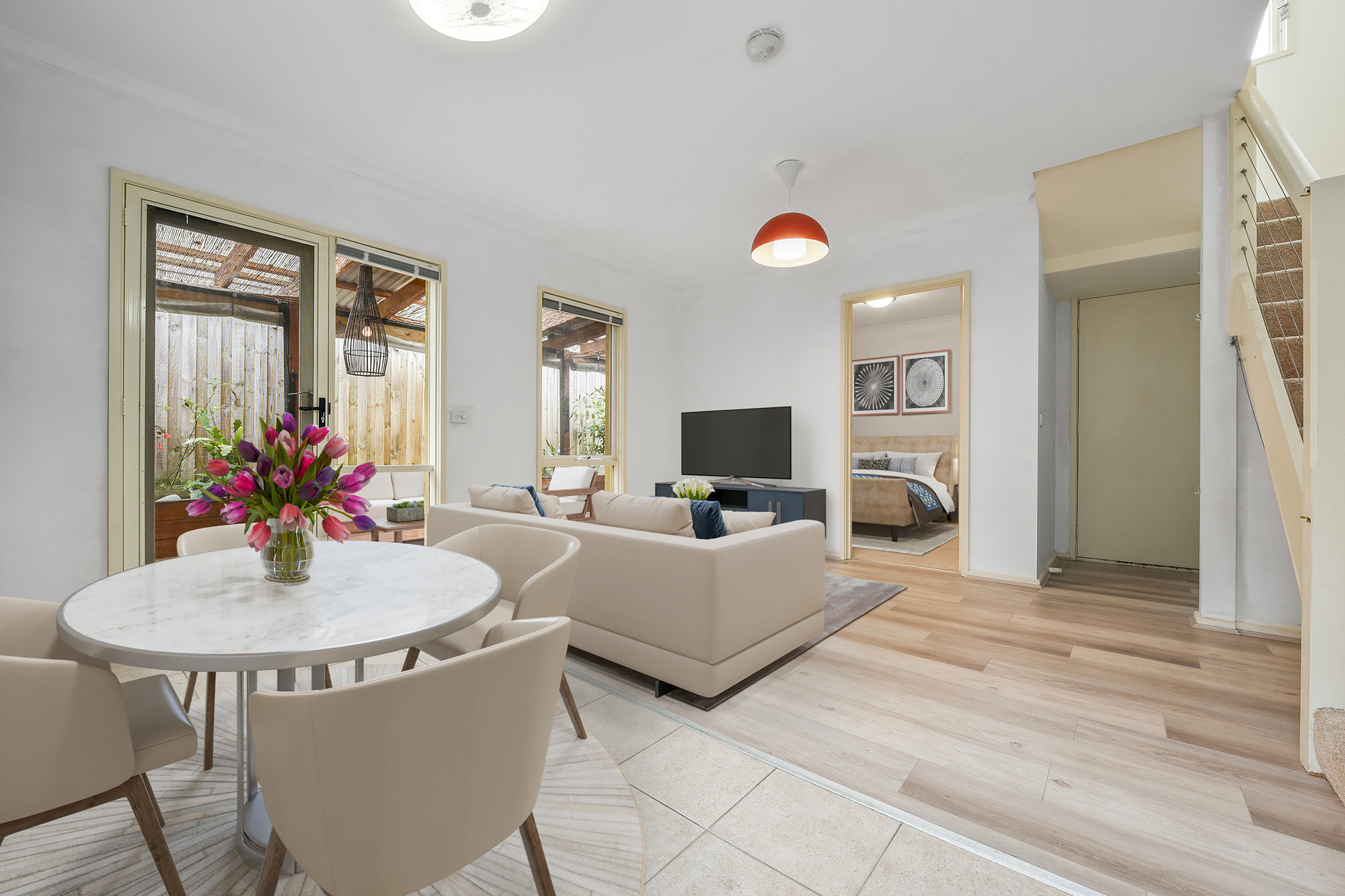 – Bright and spacious living and dining areas with polished timber floors