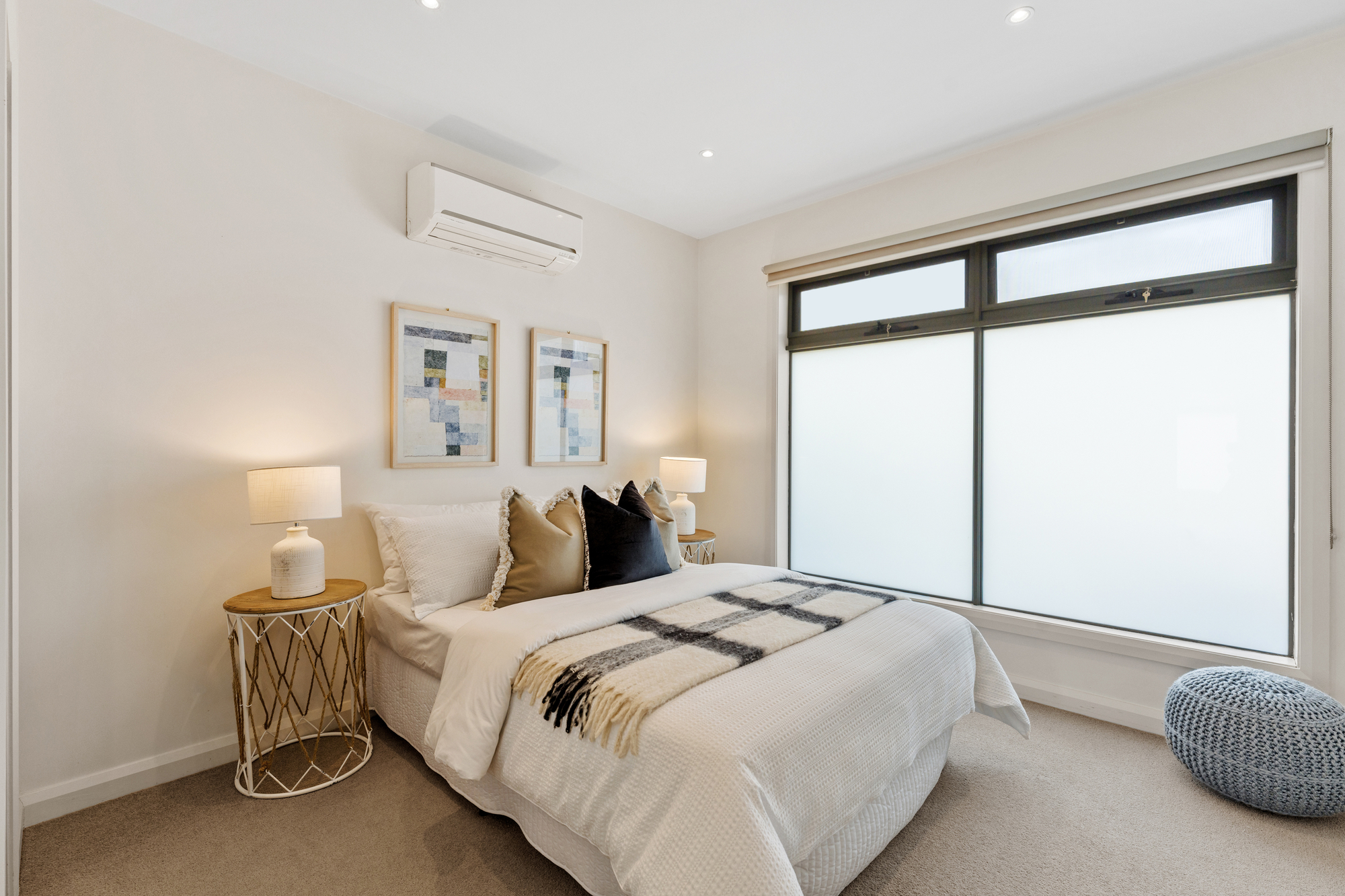 Both bedrooms are carpeted and fitted with split-system air conditioning. The main bedroom includes a walk-in robe and private ensuite, while the second bedroom features built-in robes and its own ensuite, offering flexibility for family living, guests, or shared accommodation.