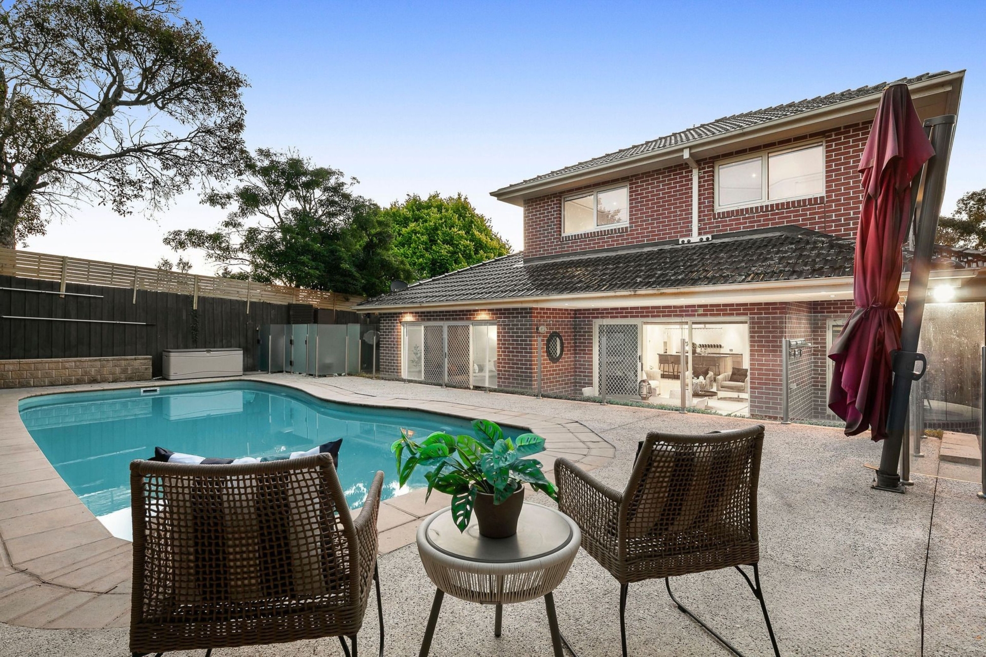 The upper level accommodates 4 bedrooms, highlighted by a park facing master bedroom with a terrace, luxury jacuzzi and double shower, and a family bathroom close to the children’s bedrooms. For busy working families, the property has been landscaped for easy care with no lawn, an in-ground hideaway pool and fragrant jasmine along the fence. It’s a gorgeous resort style setting for summer fun in the sun, with plenty of off-street parking in the driveway and in the double garage, and great access to both public and private schools including Parkmore Primary, Emmaus College and Nunawading Christian College, close to Nunawading and Mitcham train stations and Eastern Fwy/Eastlink.
