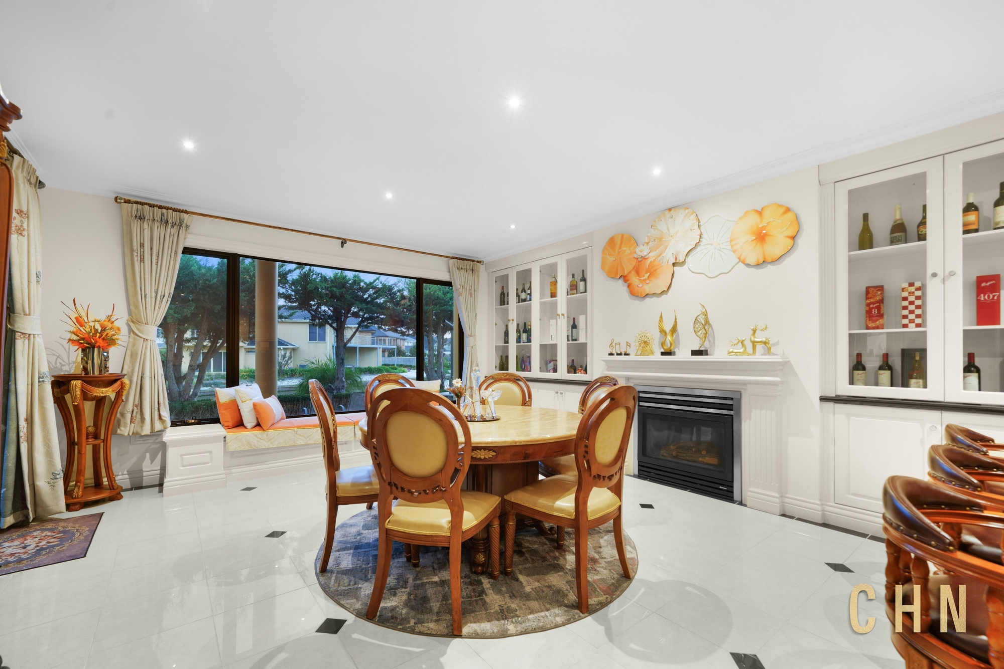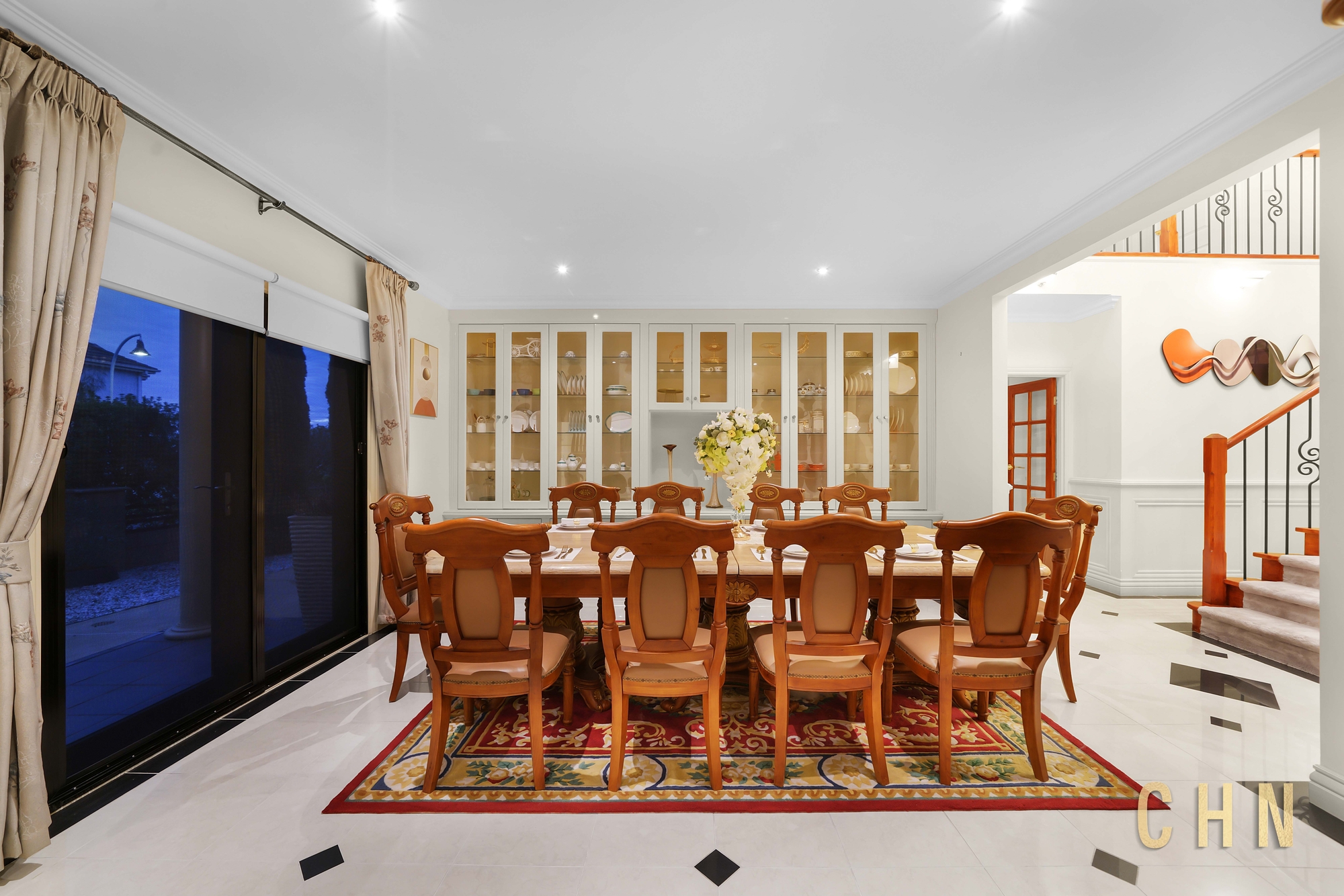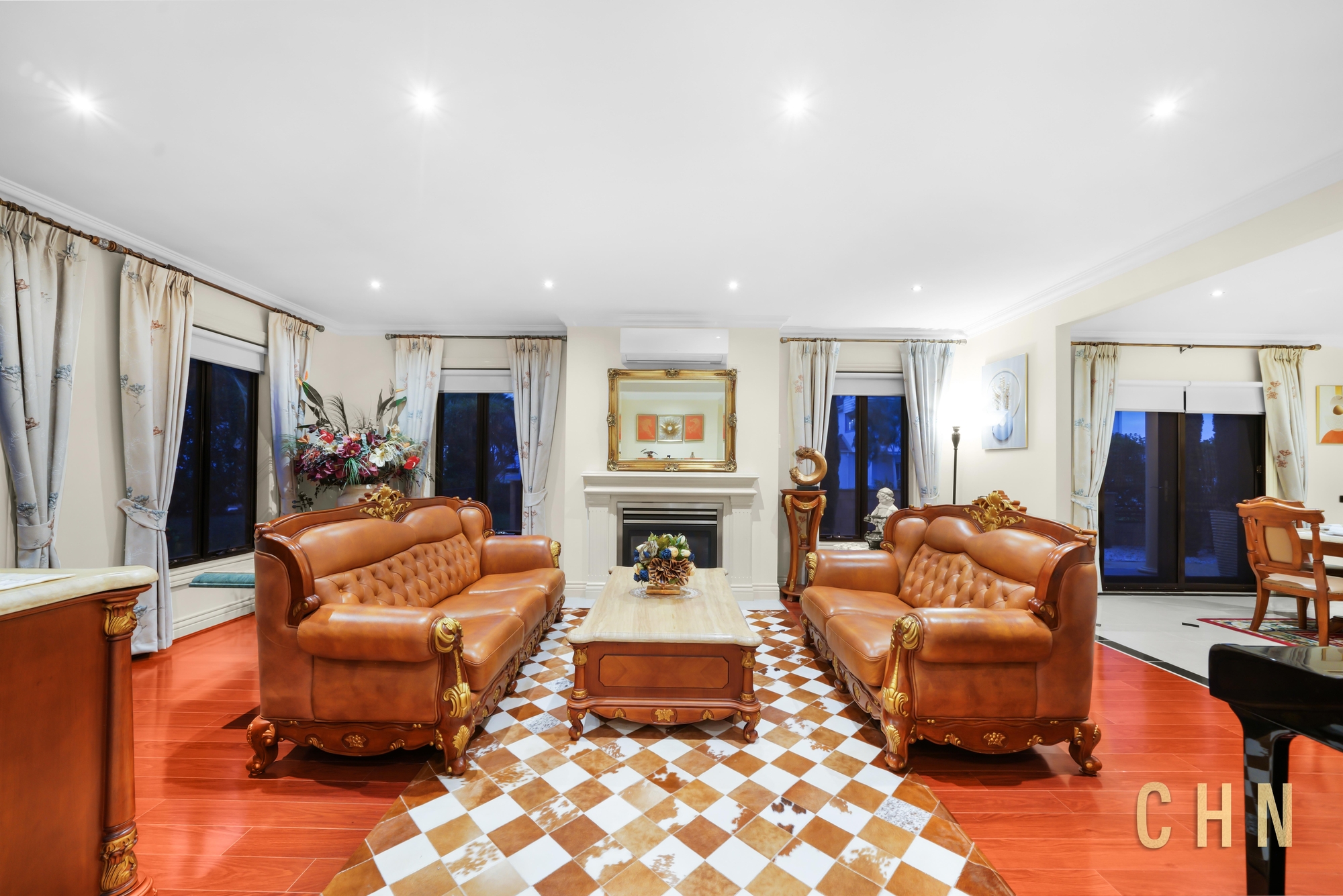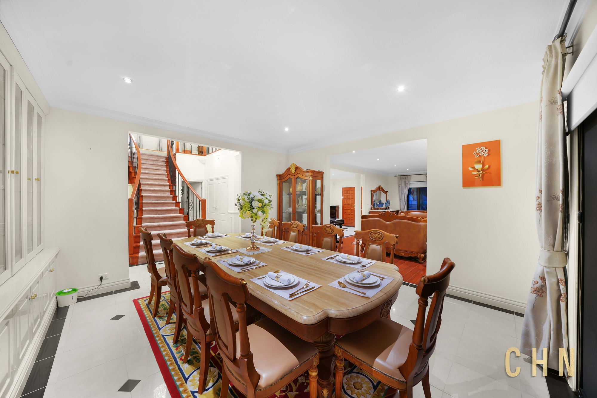 Grand Entertaining Spaces: A soaring foyer introduces the formal living area, where a built-in gas fireplace and designer LED lighting create an inviting ambiance. Flow effortlessly into the formal dining room, adorned with floor-to-ceiling wine displays, or step outside to the elevated alfresco terrace for seamless indoor-outdoor living.