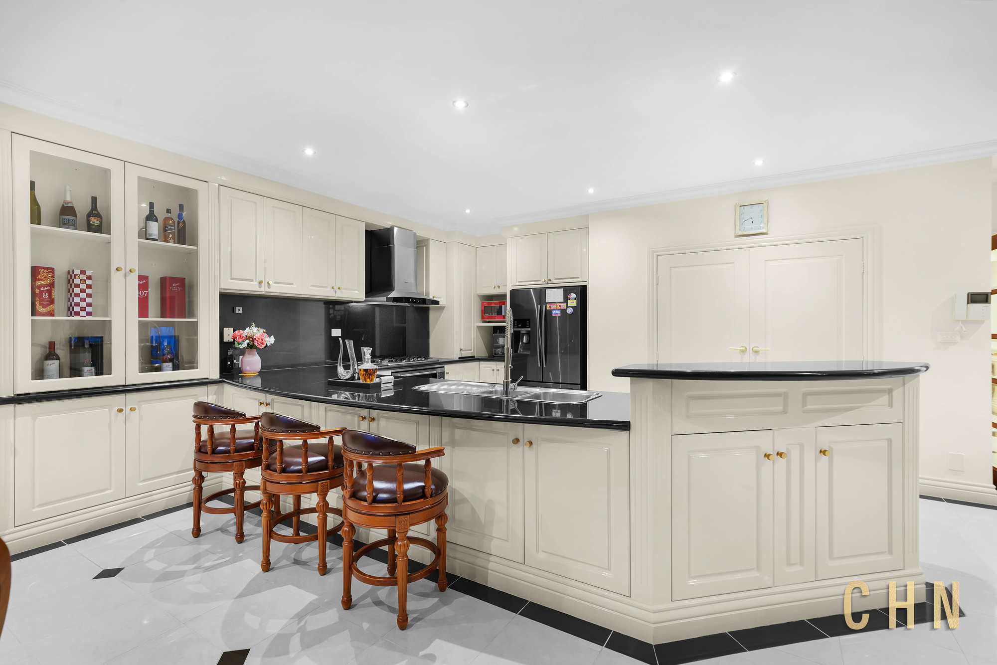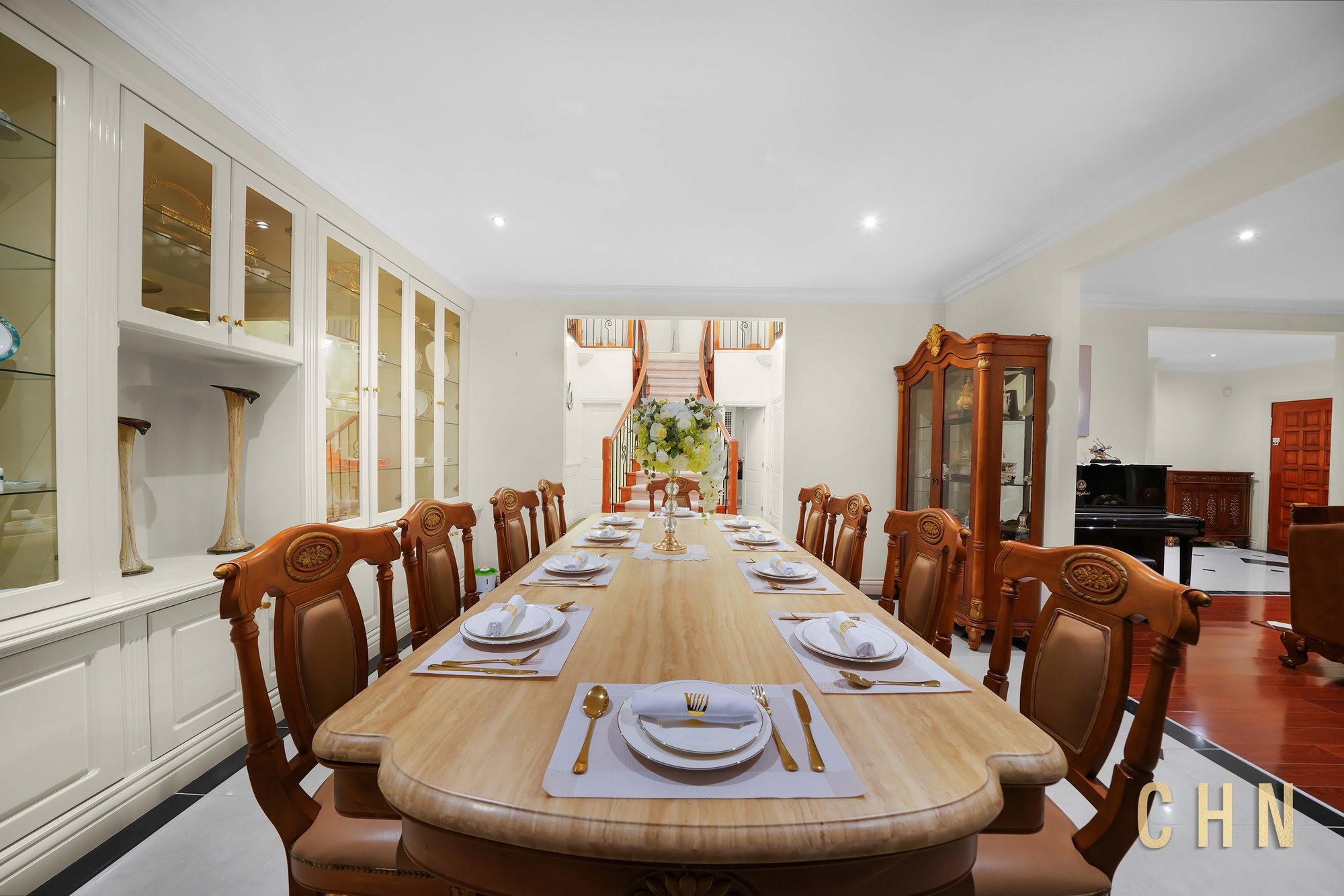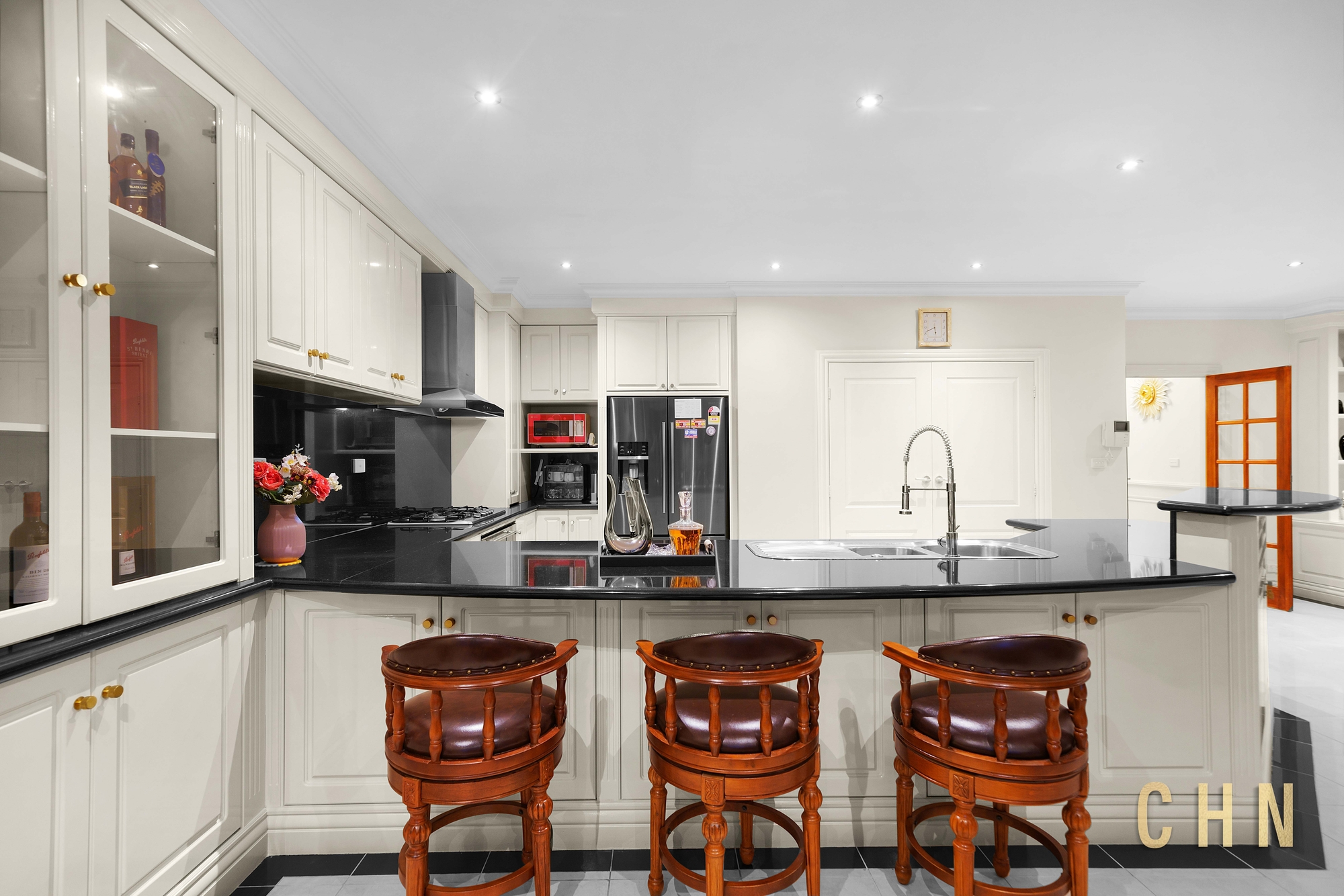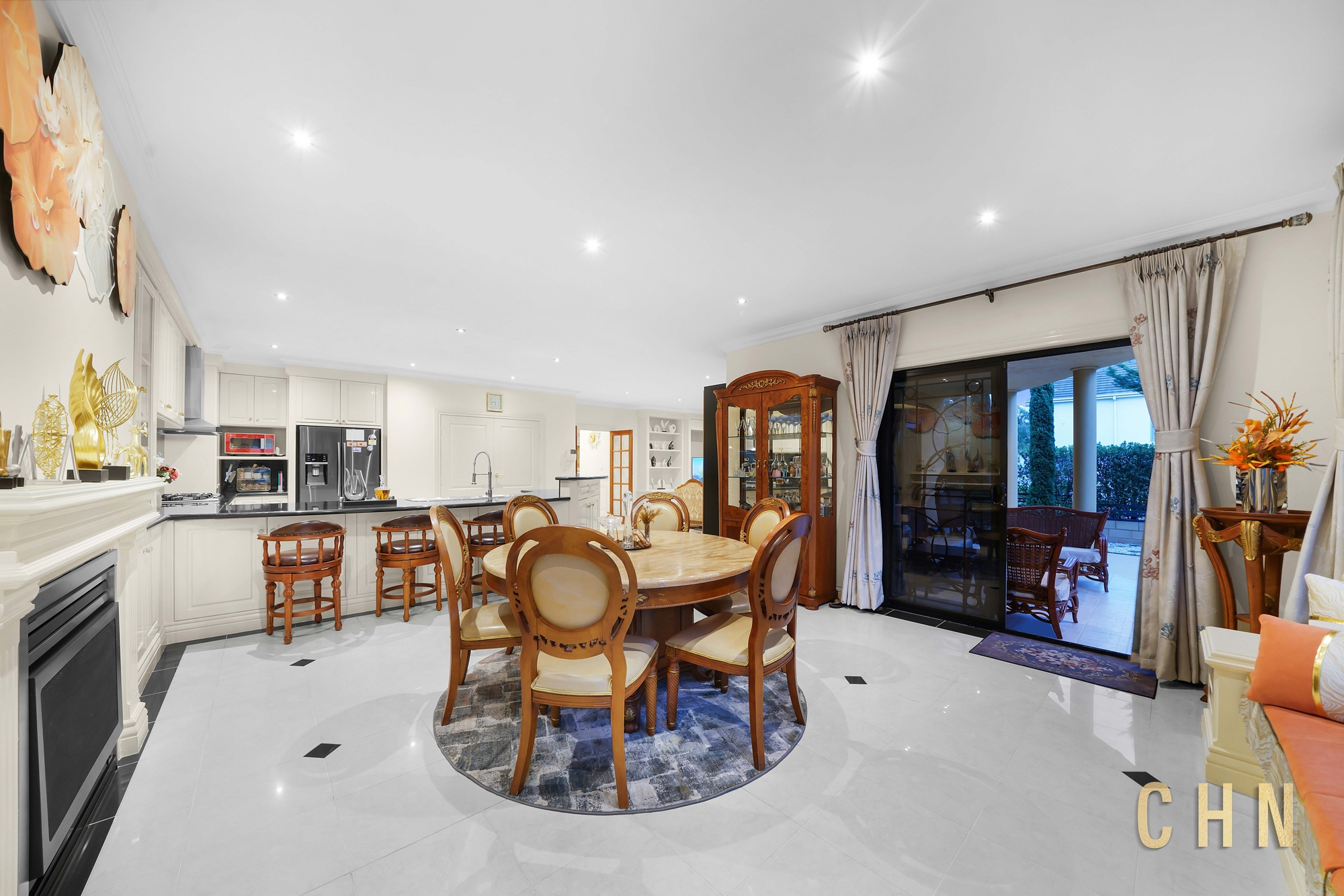 Grand Entertaining Spaces: A soaring foyer introduces the formal living area, where a built-in gas fireplace and designer LED lighting create an inviting ambiance. Flow effortlessly into the formal dining room, adorned with floor-to-ceiling wine displays, or step outside to the elevated alfresco terrace for seamless indoor-outdoor living.