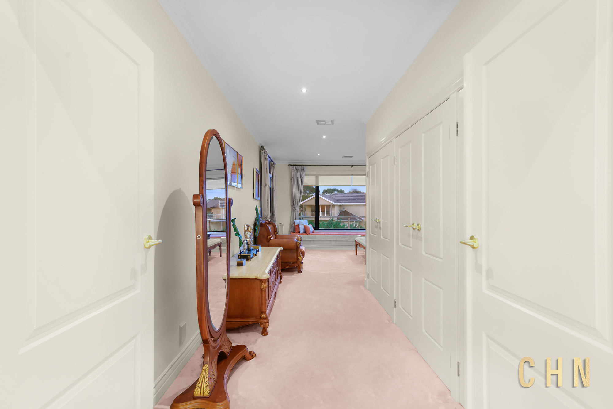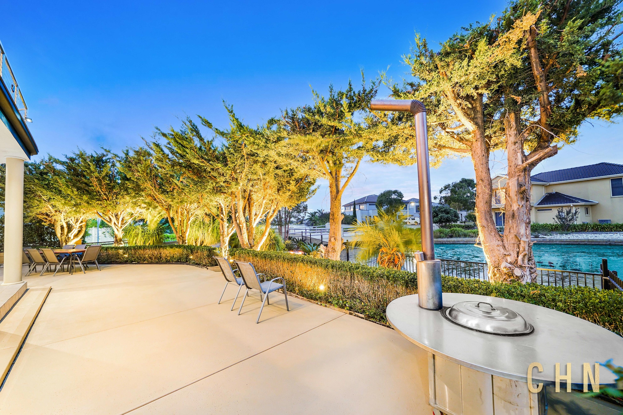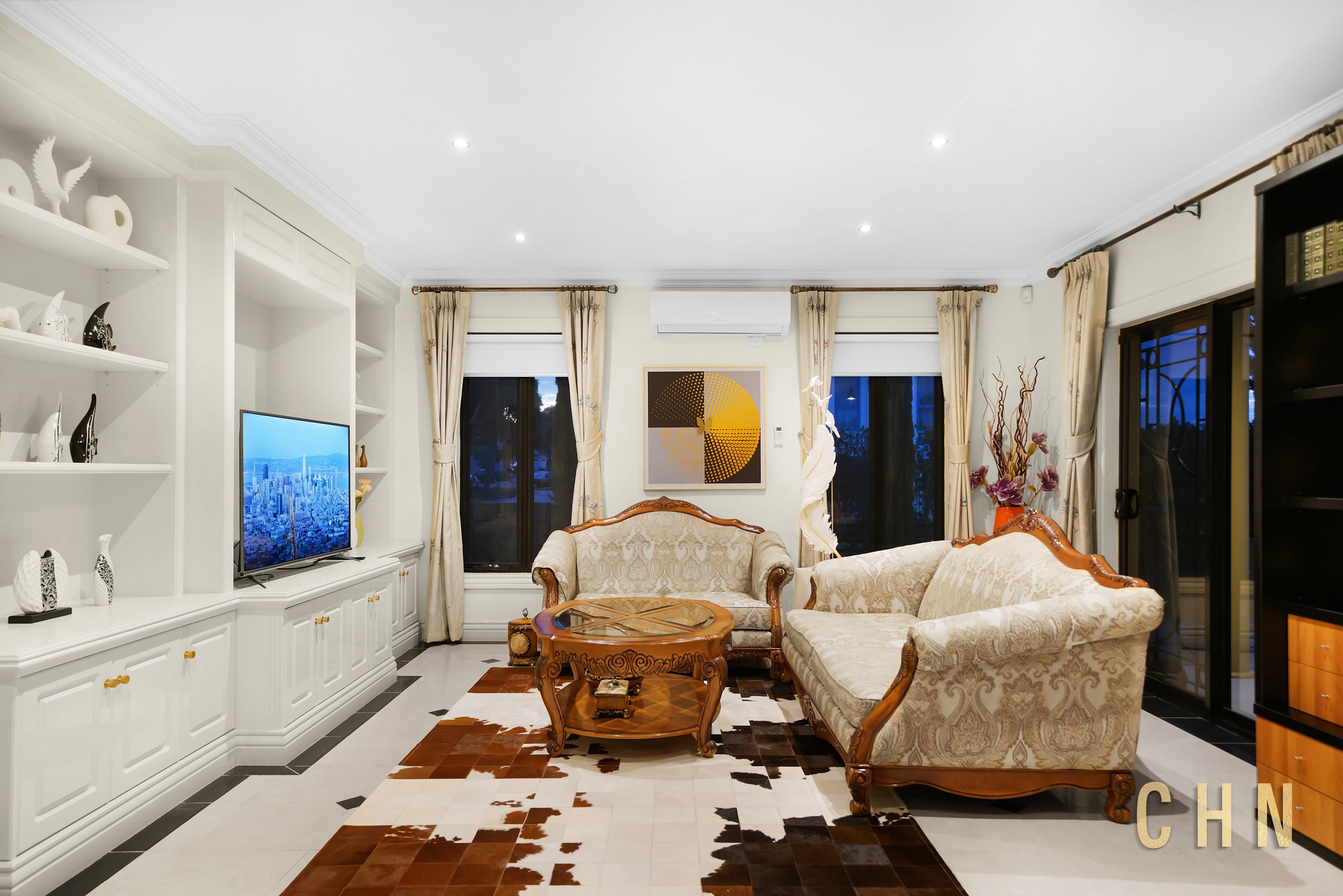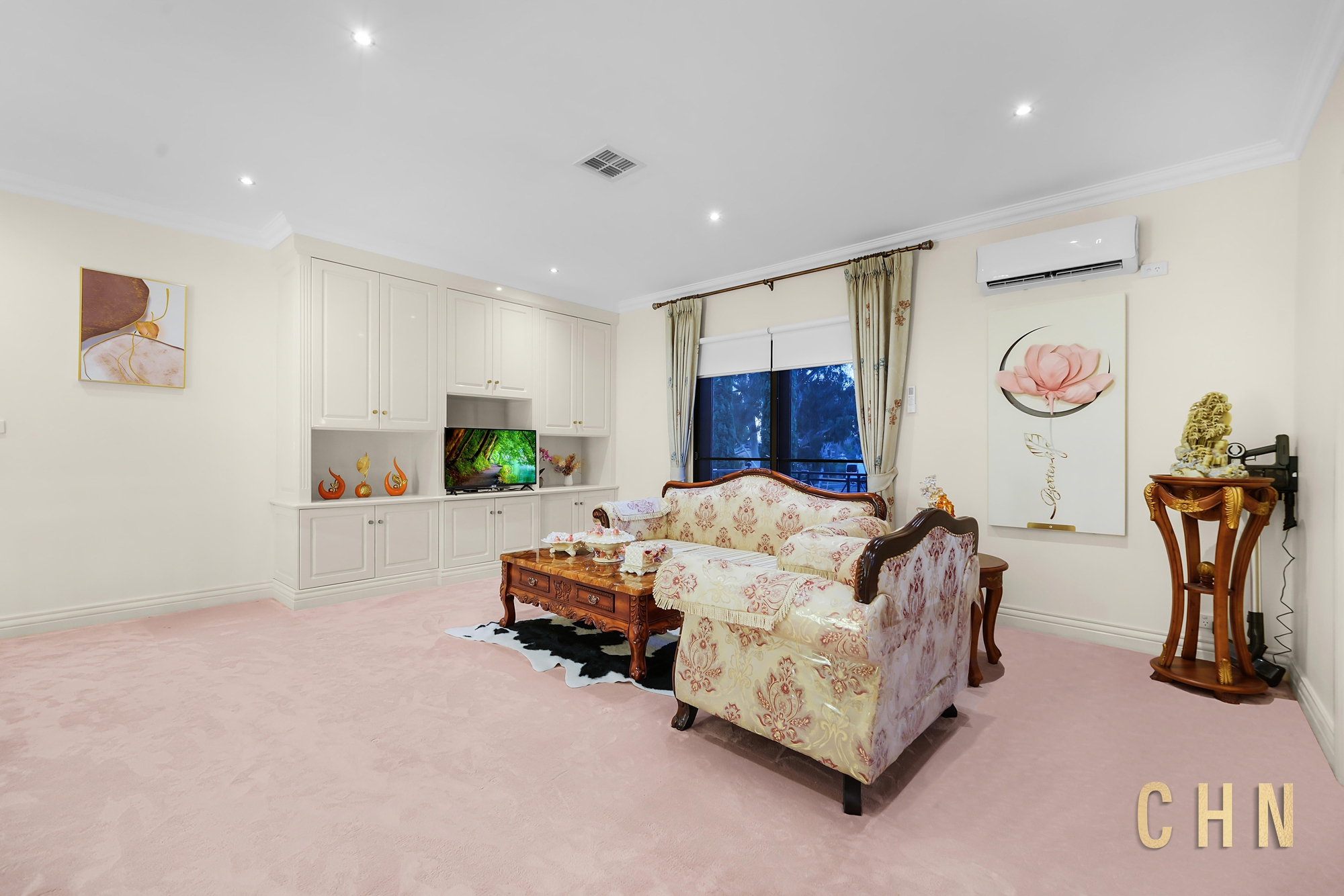 Grand Entertaining Spaces: A soaring foyer introduces the formal living area, where a built-in gas fireplace and designer LED lighting create an inviting ambiance. Flow effortlessly into the formal dining room, adorned with floor-to-ceiling wine displays, or step outside to the elevated alfresco terrace for seamless indoor-outdoor living.
