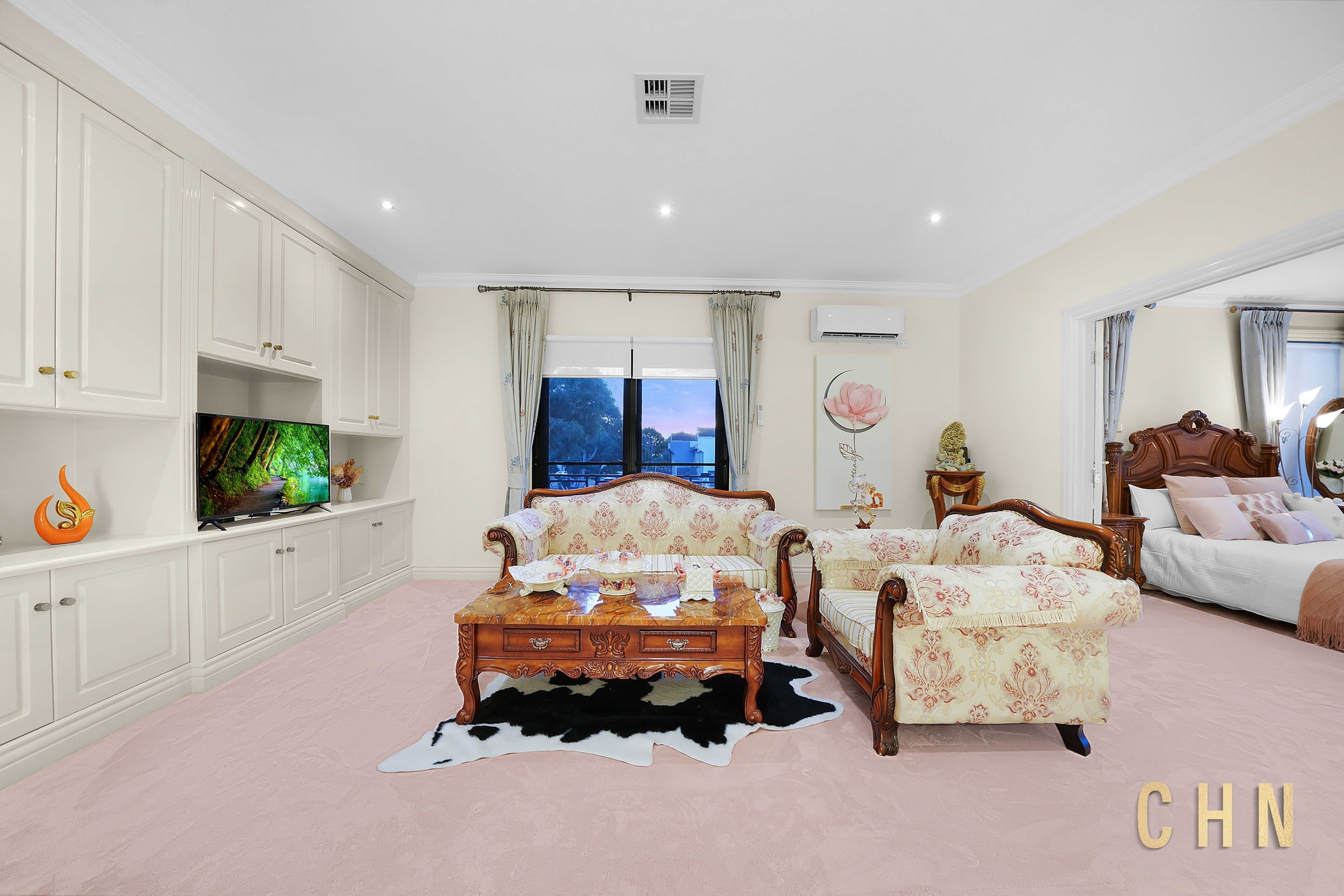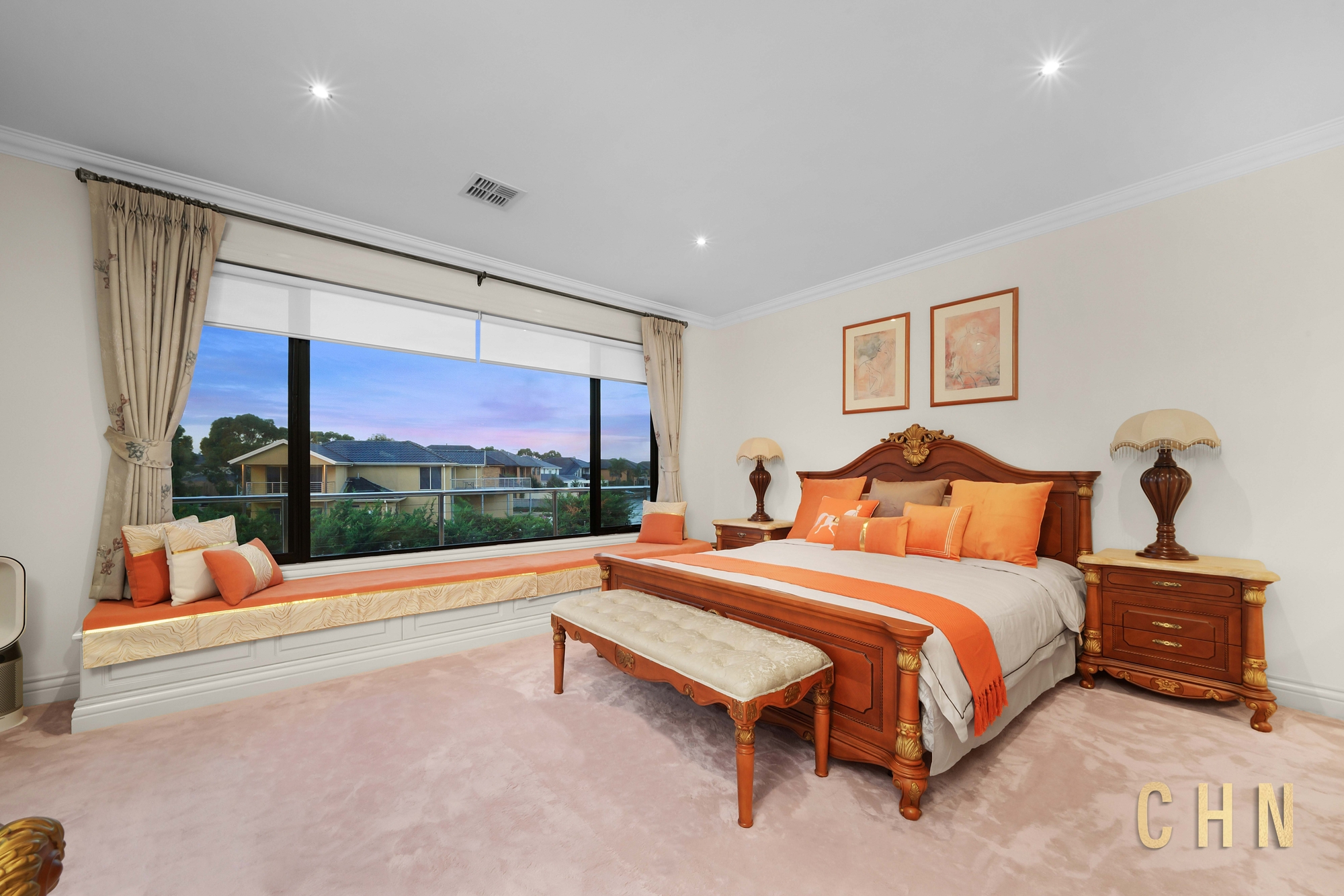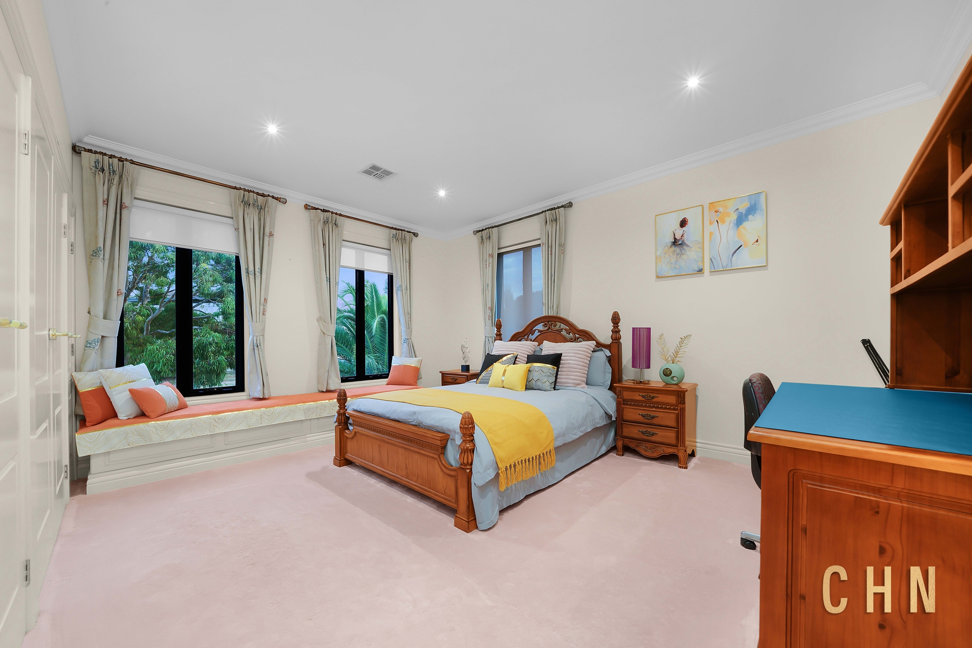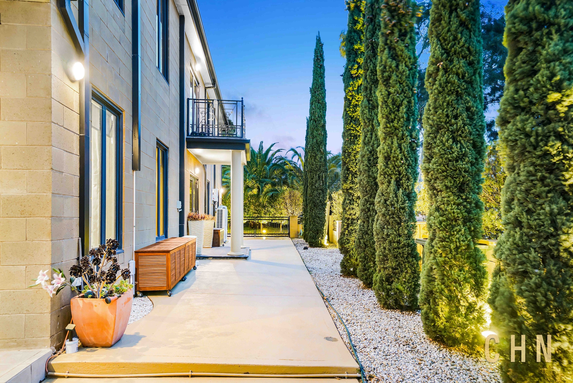Grand Entertaining Spaces: A soaring foyer introduces the formal living area, where a built-in gas fireplace and designer LED lighting create an inviting ambiance. Flow effortlessly into the formal dining room, adorned with floor-to-ceiling wine displays, or step outside to the elevated alfresco terrace for seamless indoor-outdoor living.