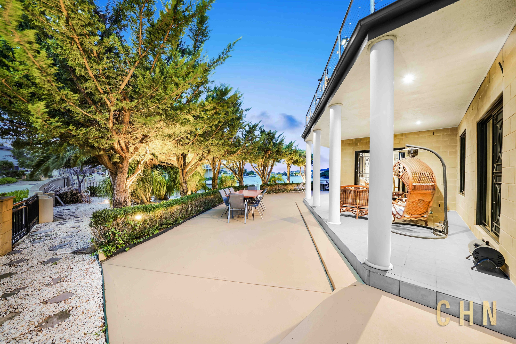 Welcome to an unparalleled sanctuary of luxury, where the charm of an Italian Country Villa blends seamlessly with contemporary sophistication. Framed by a stately double-pillared entrance, manicured low-maintenance gardens, and a gated cedar-lined driveway, this stone-clad estate offers privacy and prestige. Towering balconies, grand timber double doors, and a waterfront backdrop evoke the romance of Tuscany, while delivering the convenience of modern living.
