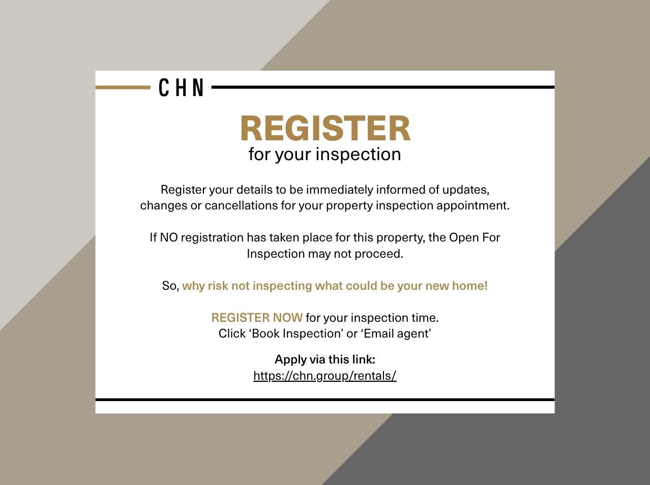 Open Inspection may be canceled without notice, please register to receive notice.